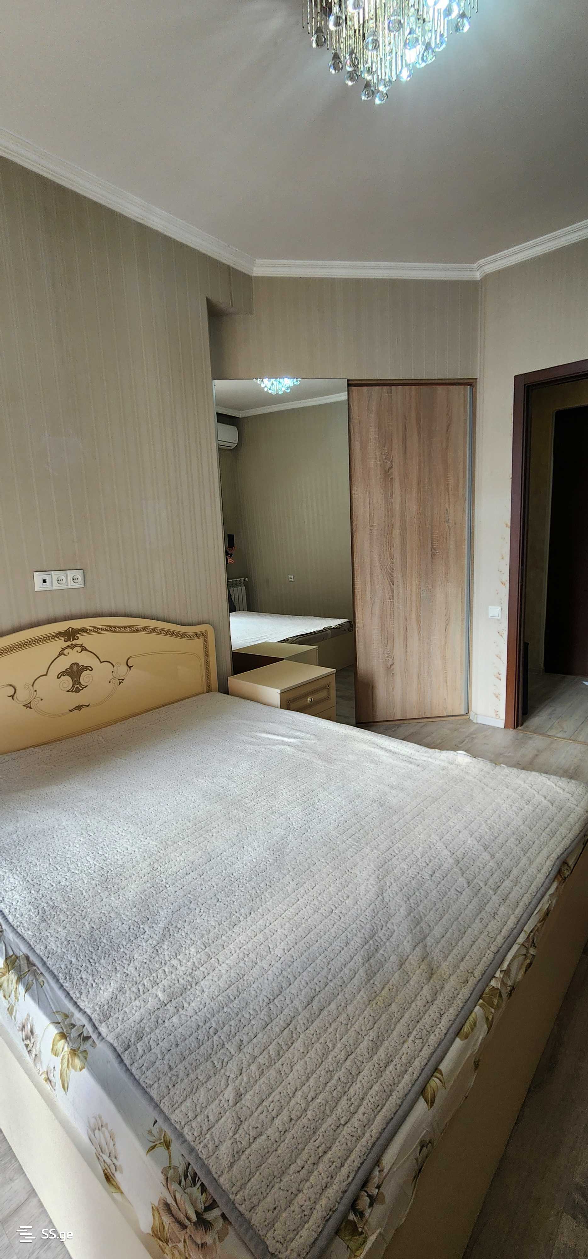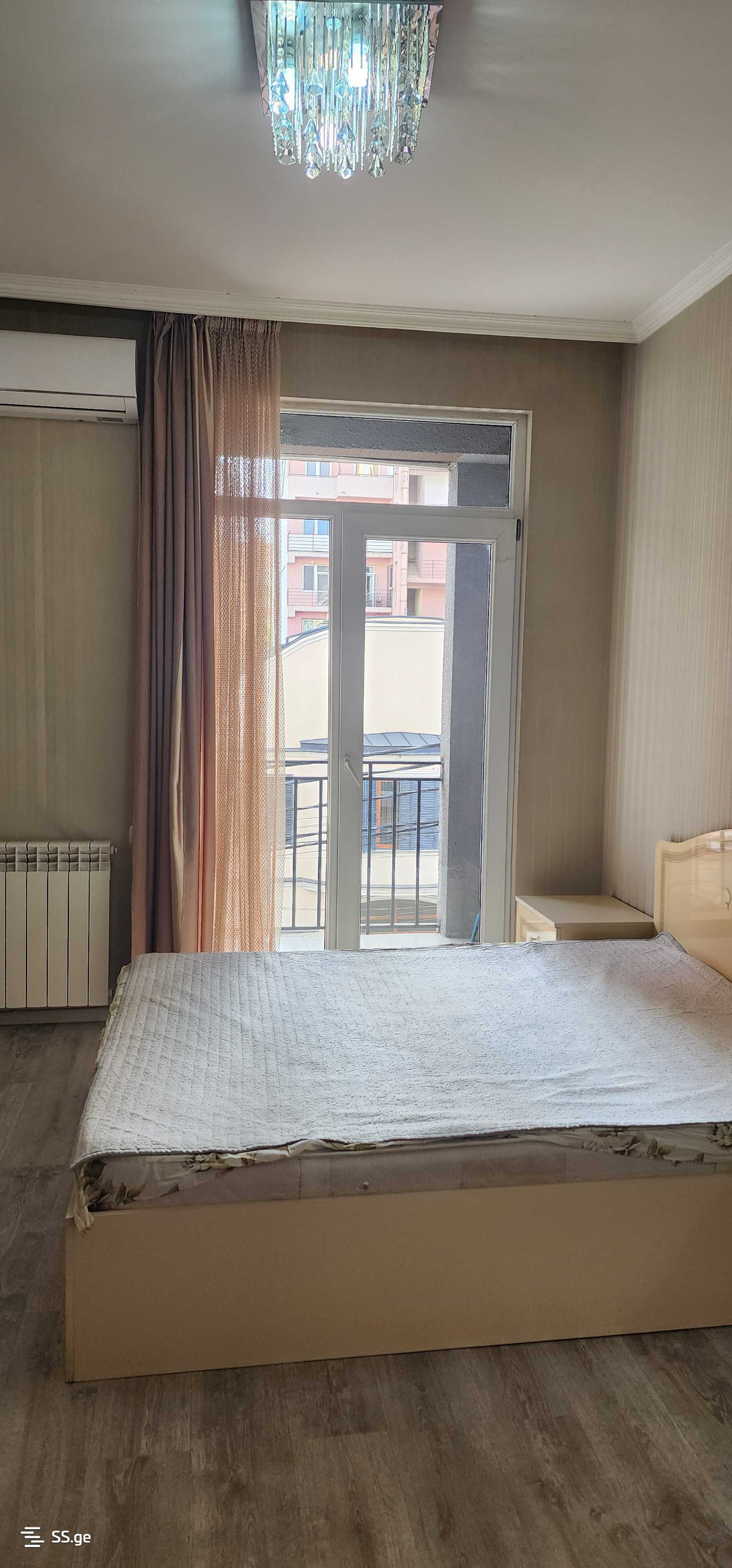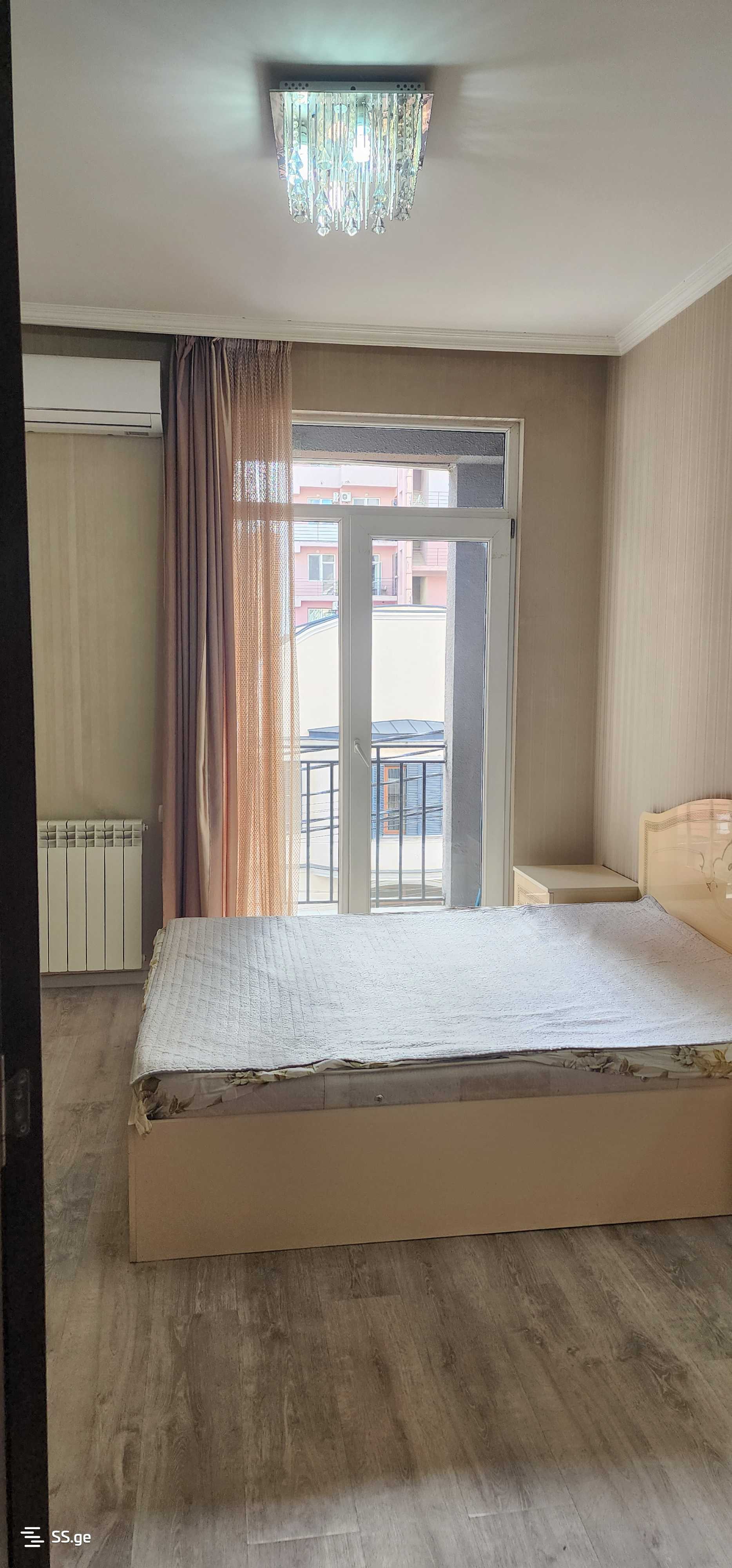 For rent: a 2-room renovated apartment with furniture and appliances in a newly built building. The building is located on a street parallel to Kandelaki Street, 7 minutes by metro from the Medical University.