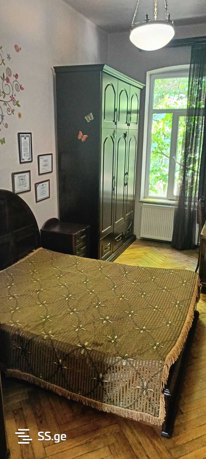 For rent in the city center, a 10-minute walk from Rustaveli Metro. For a minimum of one year. The apartment is old renovated, has central heating, an air conditioner, and a parking space. The kitchen is combined with the bathroom. A small pet is allowed. It is necessary to pay the first and last month's rent in advance. Utilities are not included in the price.