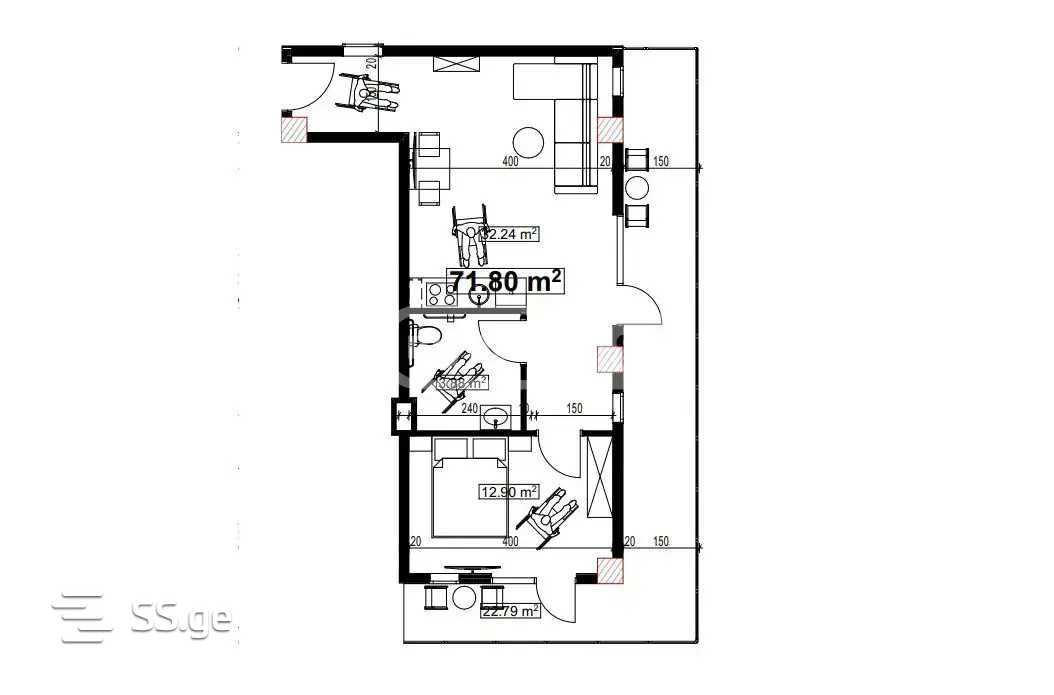 For sale in Batumi, on Rurua Street, an apartment in a building under construction with a white frame condition and a large veranda. The project will be completed in 2026, and there is an option for an internal interest-free installment plan with an advance payment.