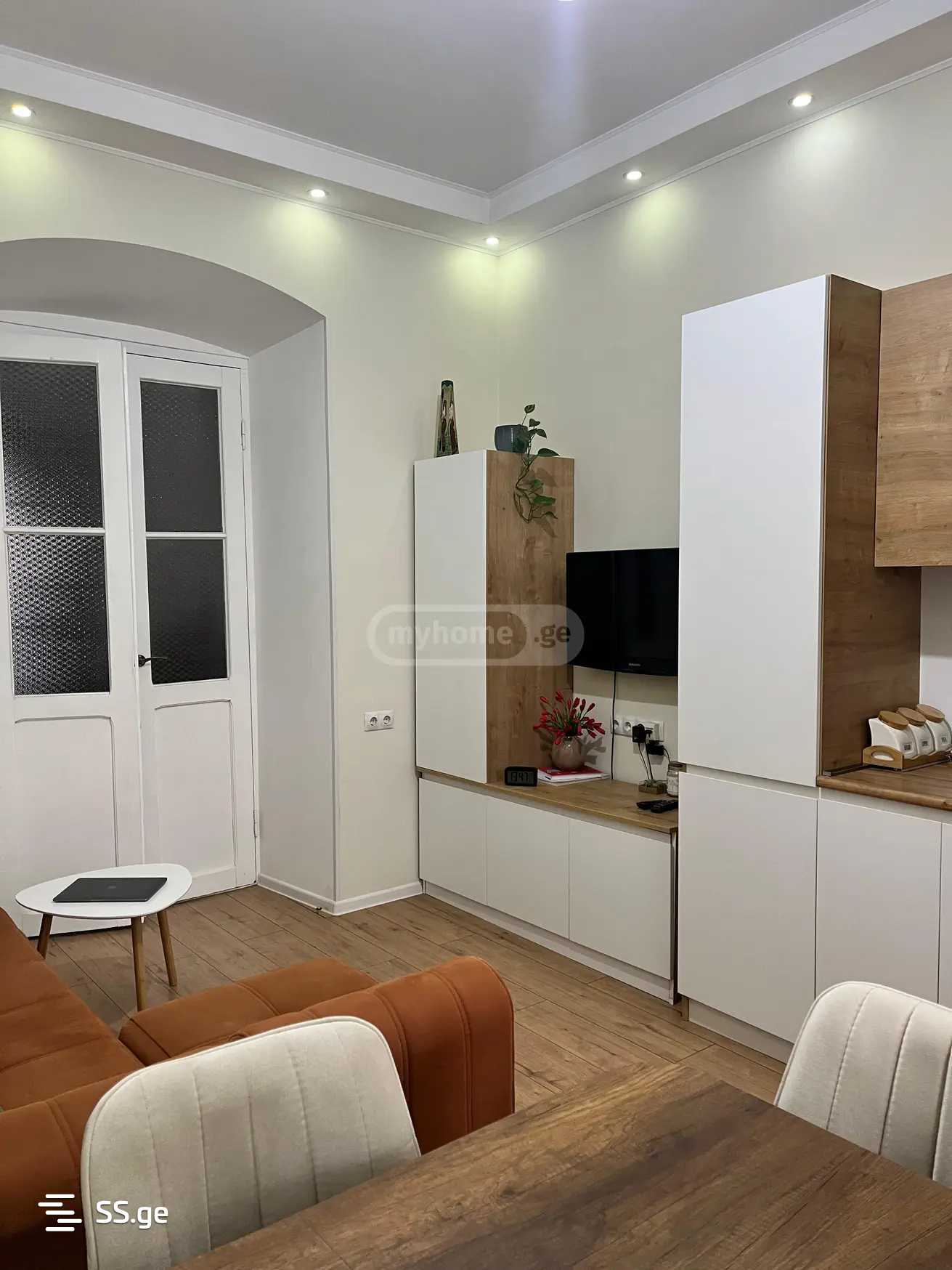 The apartment is located in an Italian courtyard, on the second floor, near Avlabari metro — only 5 minutes. The apartment was completely renovated 3 years ago. There is an individual kitchen space arranged in the common corridor.