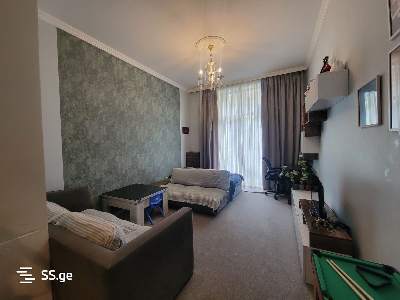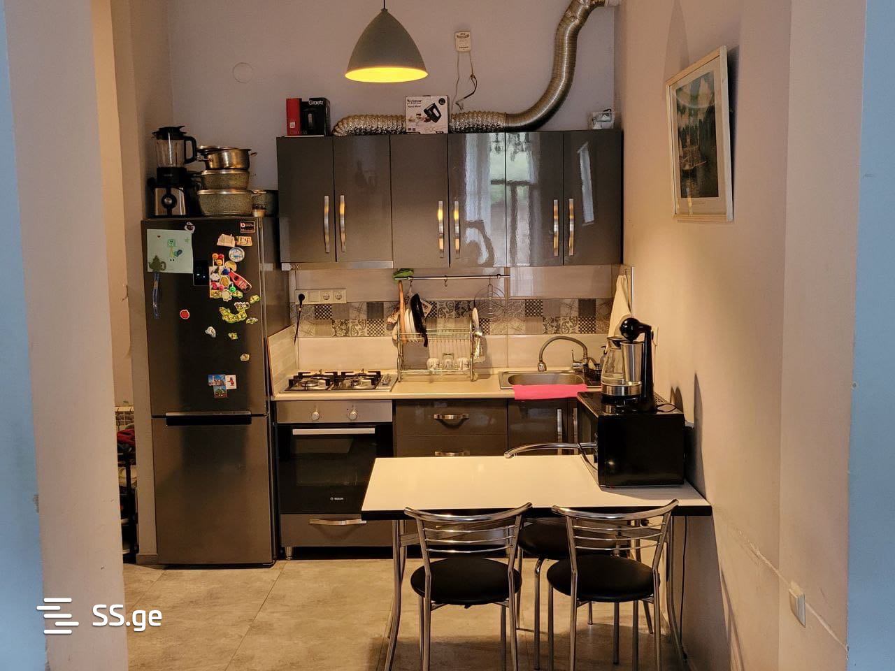 In the residential complex 'Metra Park' in the Vake Bagebi area, a 2-room studio-type apartment with a separate bedroom and high ceilings is for sale. The house is very clean and well-maintained: cleaning, elevator, parking, video surveillance. There is no realtor service. For additional questions, please call