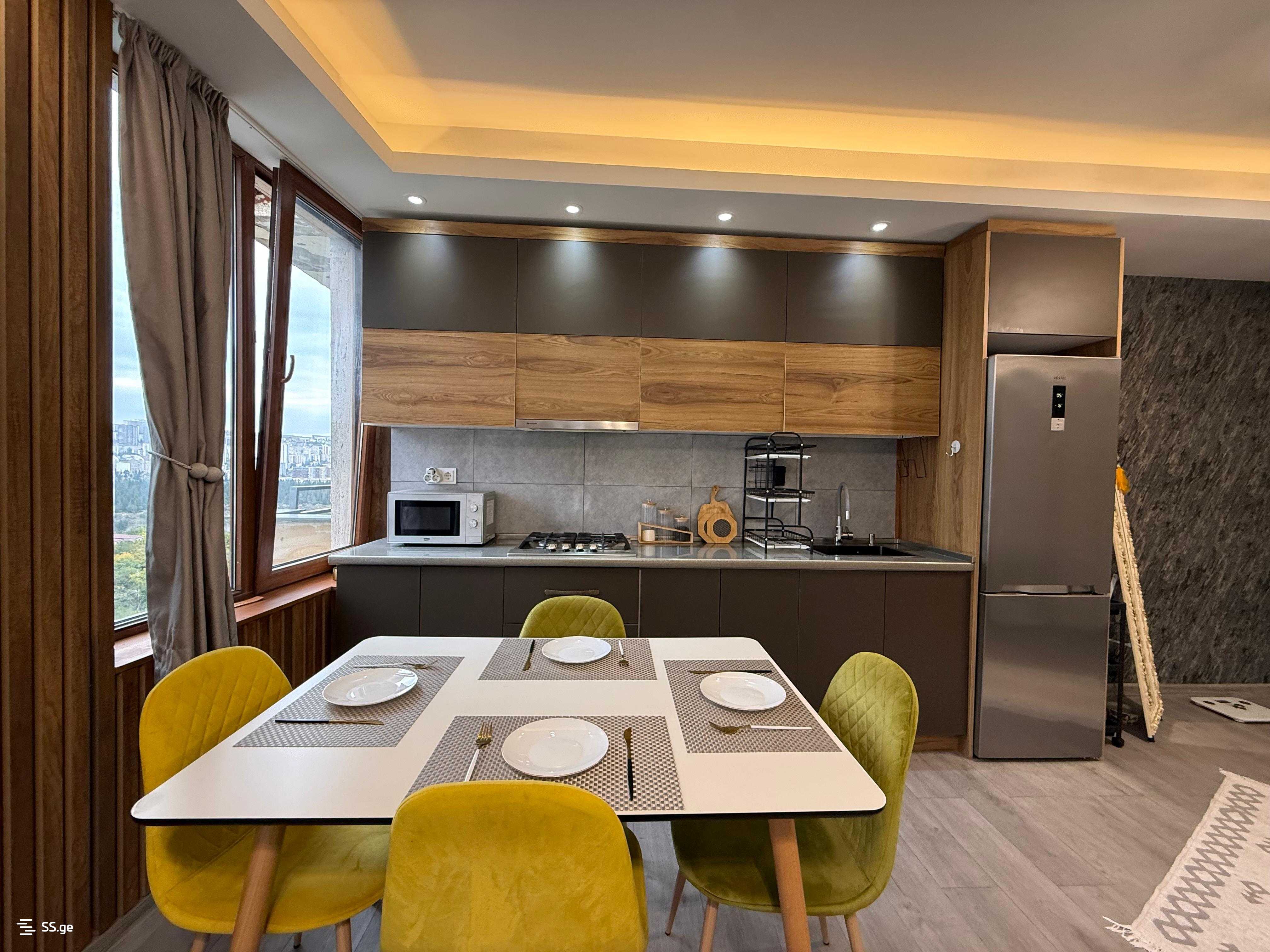 The building is newly constructed, with a secured entrance and a modern elevator. It is close to all necessary amenities. Located at the beginning of Bagebi.