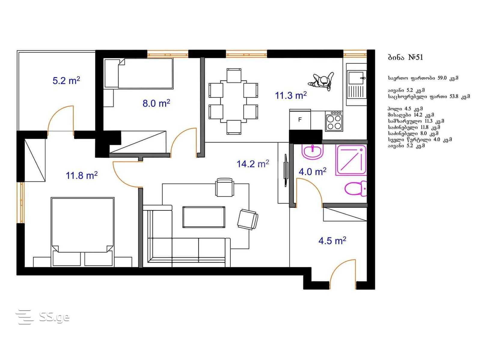 59 m²Room