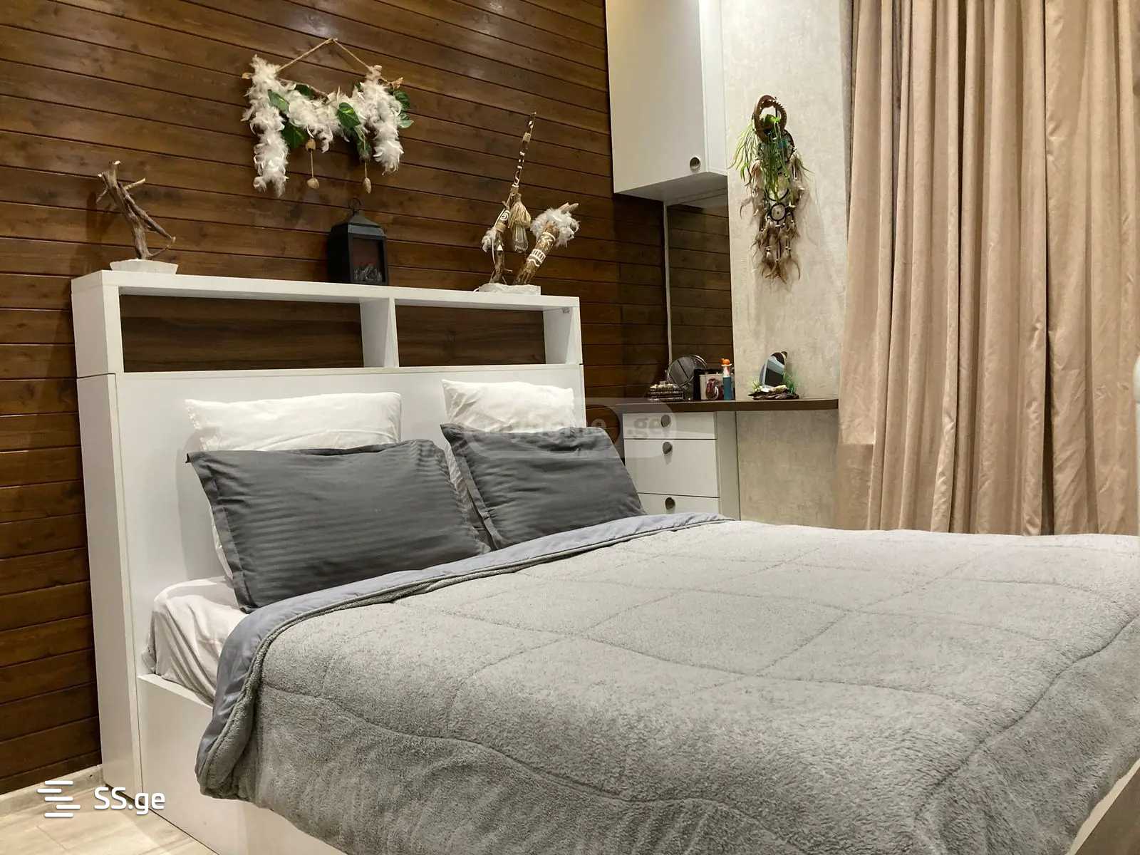 The price has decreased; you are 5 minutes away from Saburtalo, 5 minutes from Marjanishvili - an apartment is for sale near Dinamo (near the Musco-Media Theater), in front of the recreational zone of Mushtaidis Park, cheaper than the price of a white frame, with high-quality renovation, all built-in furniture and appliances remain + refrigerator, washing machine, air conditioner. The furniture is made of Italian material, Jaochien's Italian granite, high-quality washable wallpaper/flizeline, Swiss laminate, New Light lamps, German home and Vitra plumbing, Comforter's bathroom furniture, an Italian heating system in the thermo room. In an ideal and very convenient location. Suitable for both living and commercial use (the prices for frames in the area are $2100-2500) + the possibility of free parking for 2 cars. 1 balcony (you can access the balcony from both the living room and the bedroom), 1 large elevator, coded entrance, equipped with a wheelchair ramp and cameras, adapted for people with disabilities. There are schools, kindergartens, a gym, shopping centers, a swimming pool around the building, 2 metro stations a 5-minute walk away, in the greenery/in front of the recreational area, near the entrance to Mushtaidis Park. With clean documents (not burdened by a mortgage).