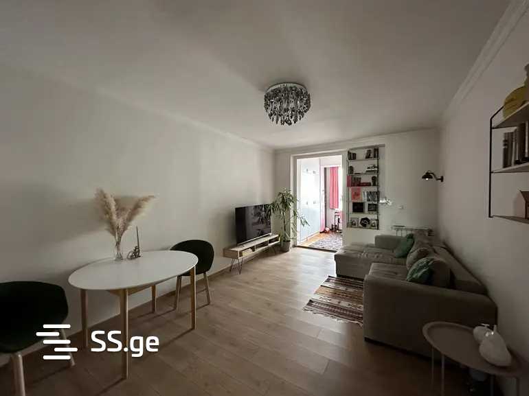 For sale is an urban-style apartment, fully furnished. With furniture, appliances, and central heating. In a very good location, directly in front of the exhibition. The loggia is partitioned and exits from 1 small bedroom through a doorway and also exits from the kitchen into the dining room, which has a small balcony.