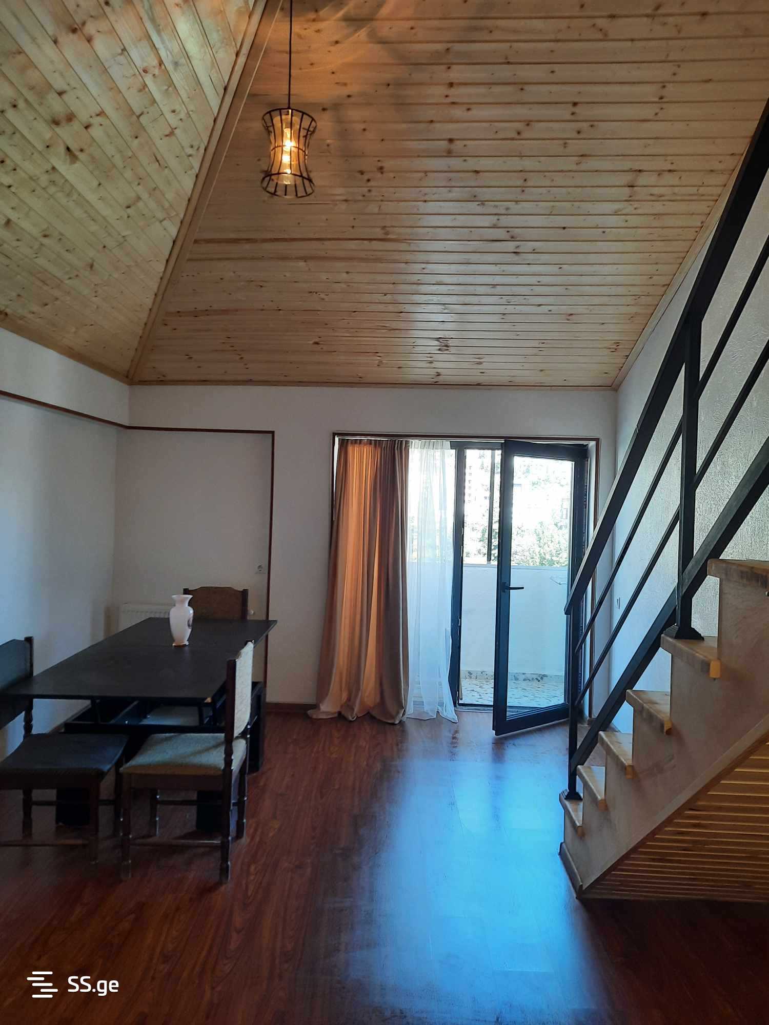 For sale is a capital attic, the so-called technical floor (not an extension) 5 minutes walk from the metro station "Vazha Pshavela". The newly renovated apartment is equipped with appliances and some furniture. The building was built in 2010, it is inhabited. Floor 7(7) area - 76 m2. The apartment is a duplex - 57 m2 + 19 m2 mezzanine. One bedroom + a second bedroom is arranged on the mezzanine. Price 95,000 USD.
