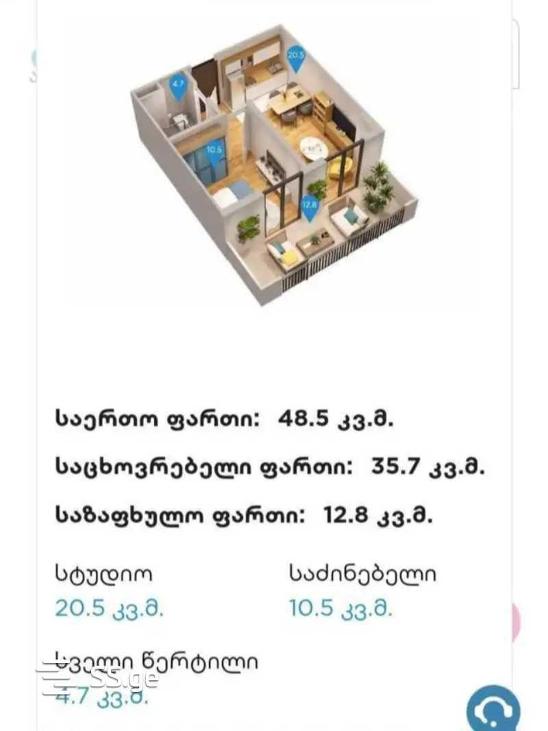 An apartment is for sale in the under-construction building of Archi at its price. 5 Gobronidze St. Near Akhmeteli Metro. 48.5 sq. 8 stories. Completion in 2027.