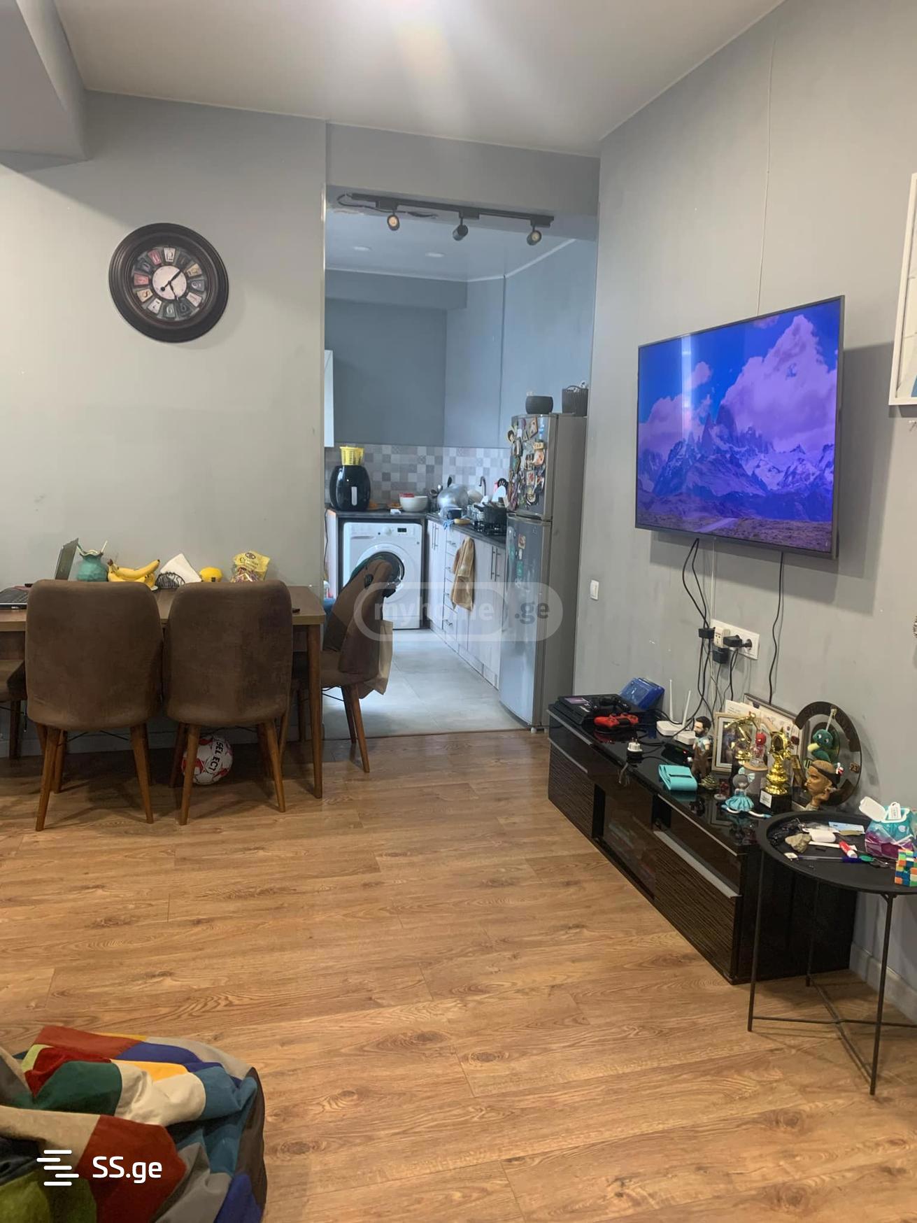 For sale 2-room apartment in the third microdistrict of Gldani in a newly built building. The apartment has one bedroom, a separate living room and kitchen, and a small balcony. Exactly 10 minutes walk from Akhmeteli metro station. The apartment includes a kitchen, a bedroom closet and an entrance closet, a TV table, a sofa, a table with chairs.