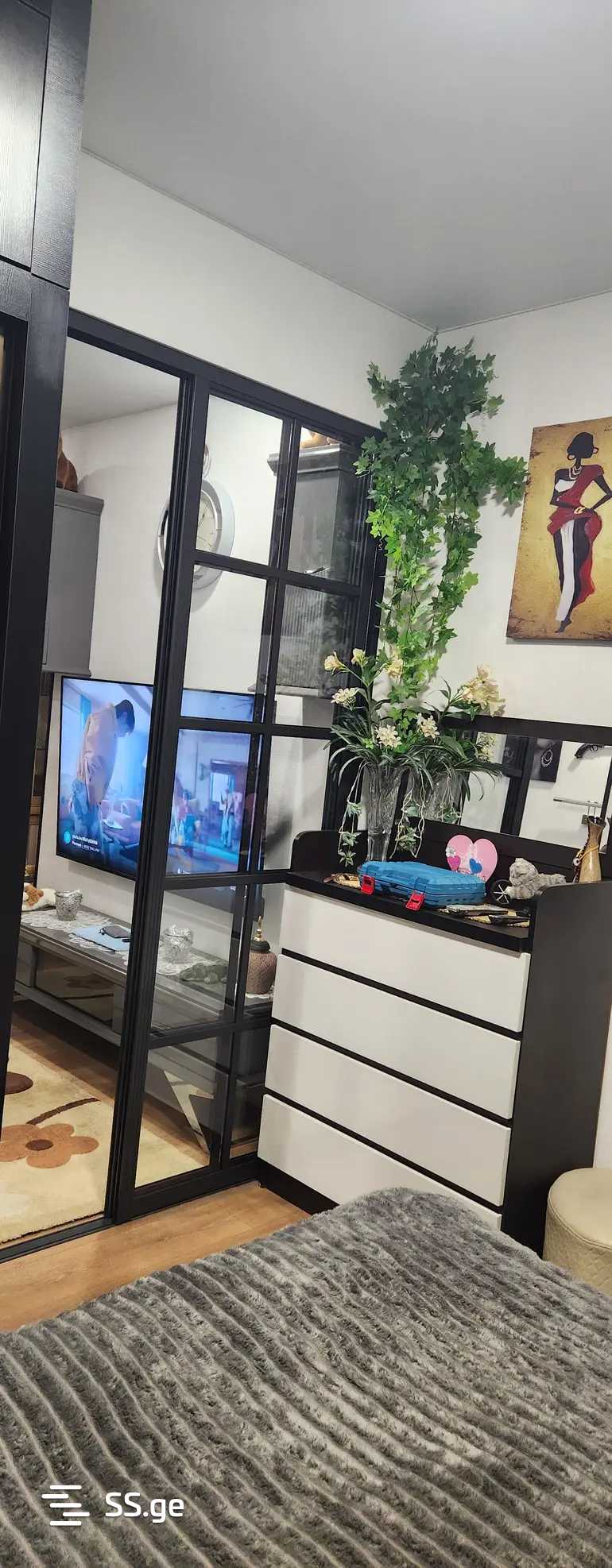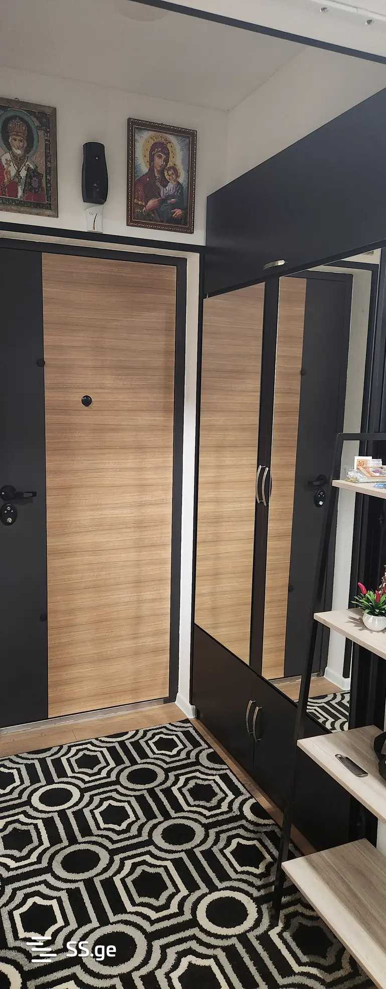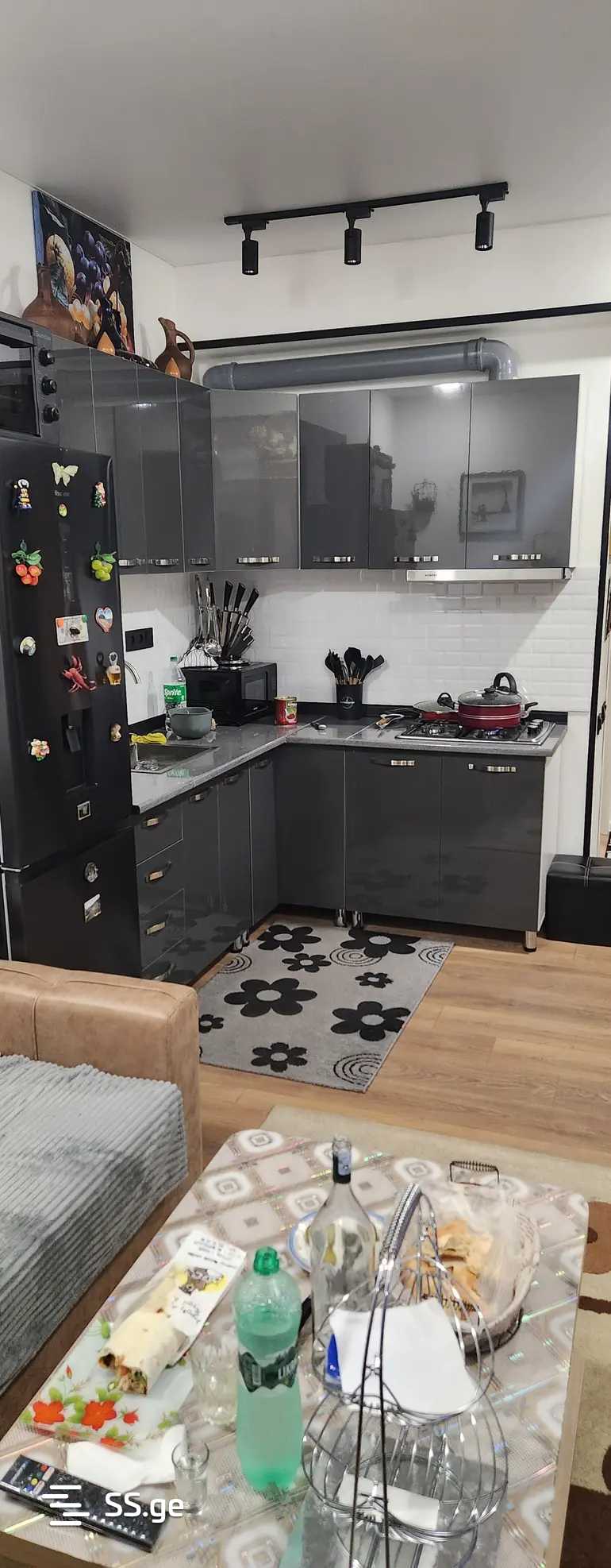 For sale: a 2-room studio apartment in a new building in Gldani, 5 minutes away from Akhmeteli Metro. On the 4th floor, with a separate bedroom, balcony, storage spaces, newly renovated, with furniture.
