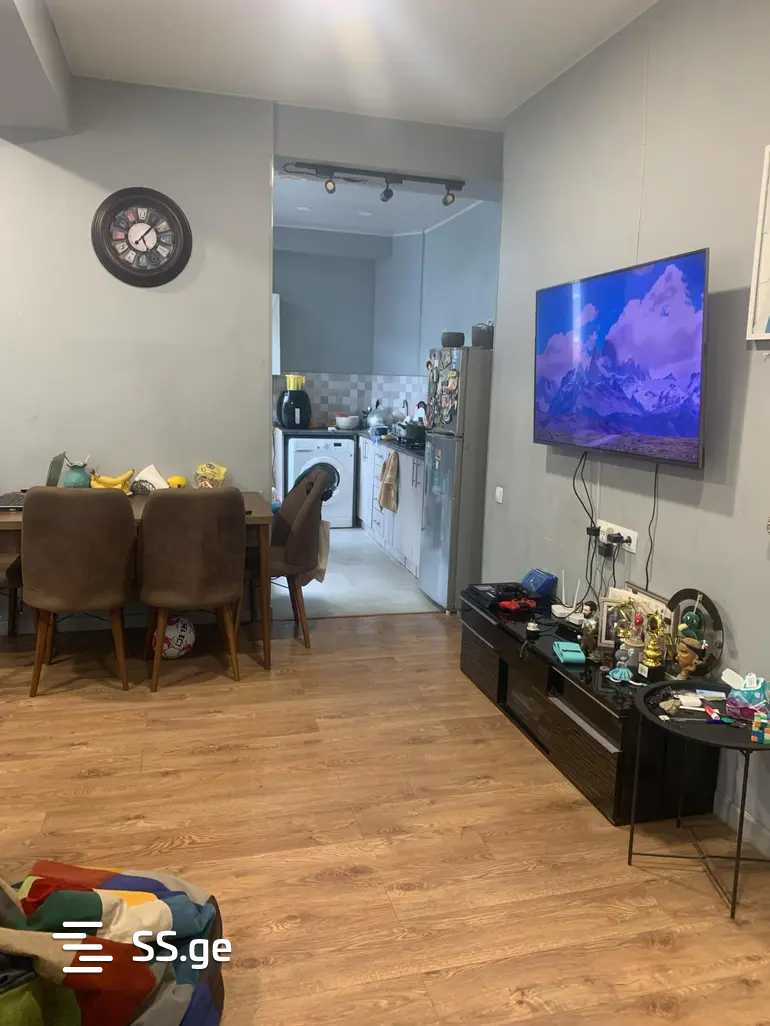 Urgently for sale is a 2-room apartment in the new building of the third microdistrict of Gldani. The apartment has one bedroom, the living room and kitchen are separate, and it also has a small balcony. The building is located at the end of the third park near the stadium. School No. 173 is next door. It is exactly a 10-minute drive from Akhmeteli metro. A minibus No. 510 and also a bus come to the building. The building is set back from the road in tranquility. The apartment includes a kitchen, a bedroom wardrobe, an entrance wardrobe, a TV table, a sofa, and a table with chairs. It is an ideal apartment for both living and renting.