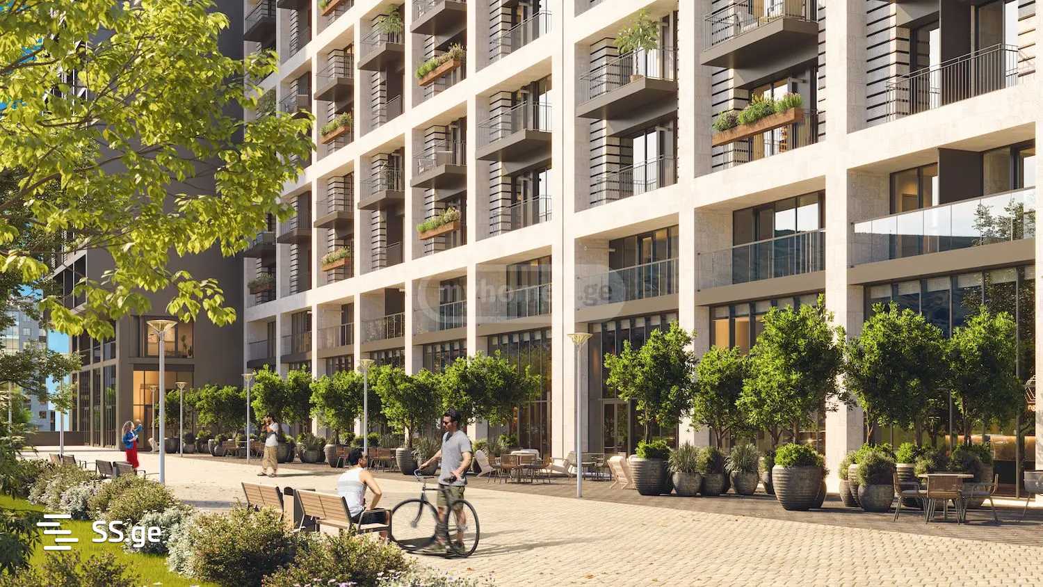An apartment is for sale in the Axis construction project in white frame condition. The building will be completed in 2027, and it is possible to purchase it through internal interest-free financing; the price is given for a lump-sum payment.