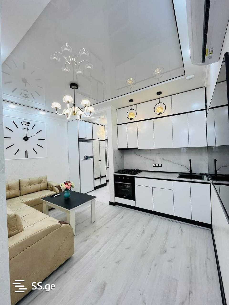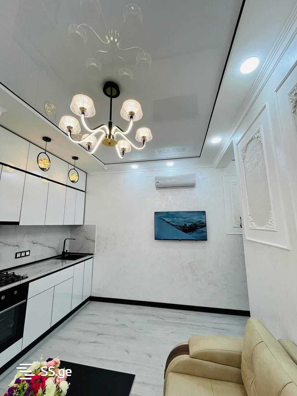 Cozy apartment with a view of the sea and mountains. Thought out to the smallest detail, high-quality repairs. Large refrigerator, oven, plenty of storage space. All appliances and plumbing are of high quality. Panoramic floor-to-ceiling windows. The house is new, gas will be connected in 2 months. 10 minutes to the sea, located in the center of Batumi. Excellent location for both living and renting.