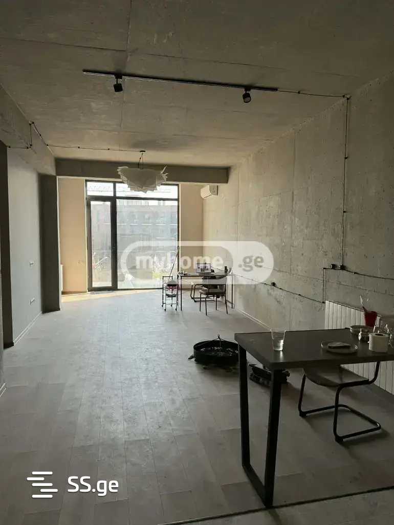 The apartment is located on the 1st floor and has its own yard which is included as a bonus (35m2+). High-quality materials were used in the renovation. The space is studio type. Full furniture and appliances are installed in the kitchen and bedroom.