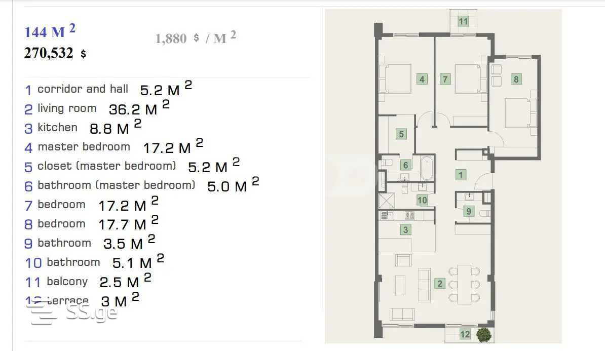 An apartment is for sale in the Panorama block in the construction project of Symmetry Park, the construction is completed.