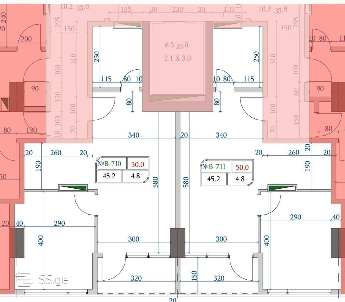 🏢 2 apartments - each 50 sq.m. (total 100 sq.m.), both located on the 12th floor.