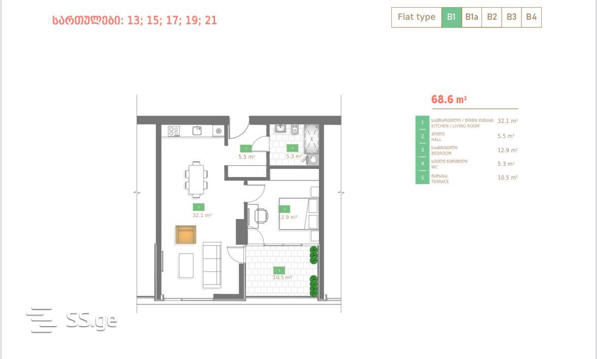 68.6m²Room