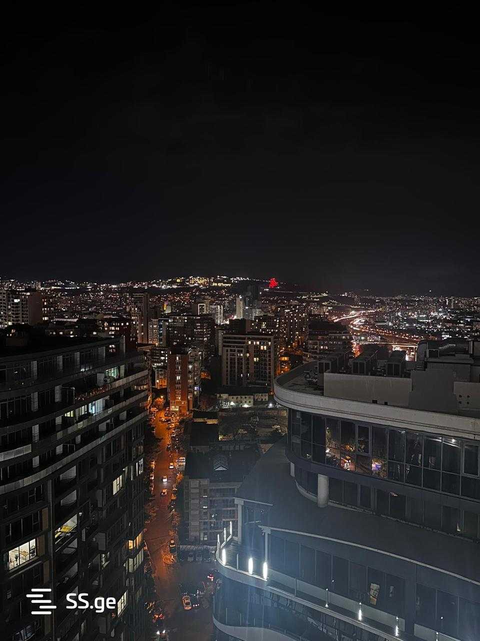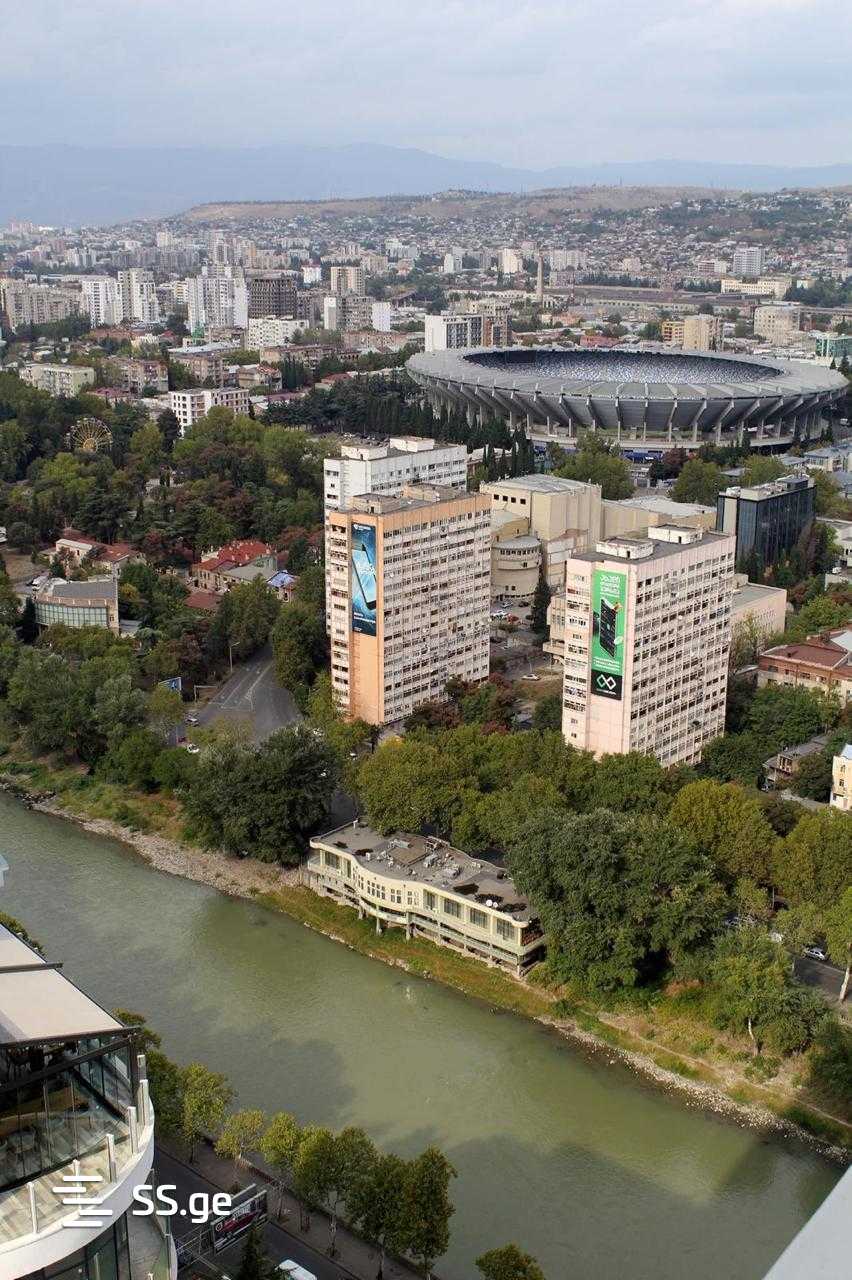 From the living room and bedroom, there is a panoramic view of Tbilisi and the mountains.