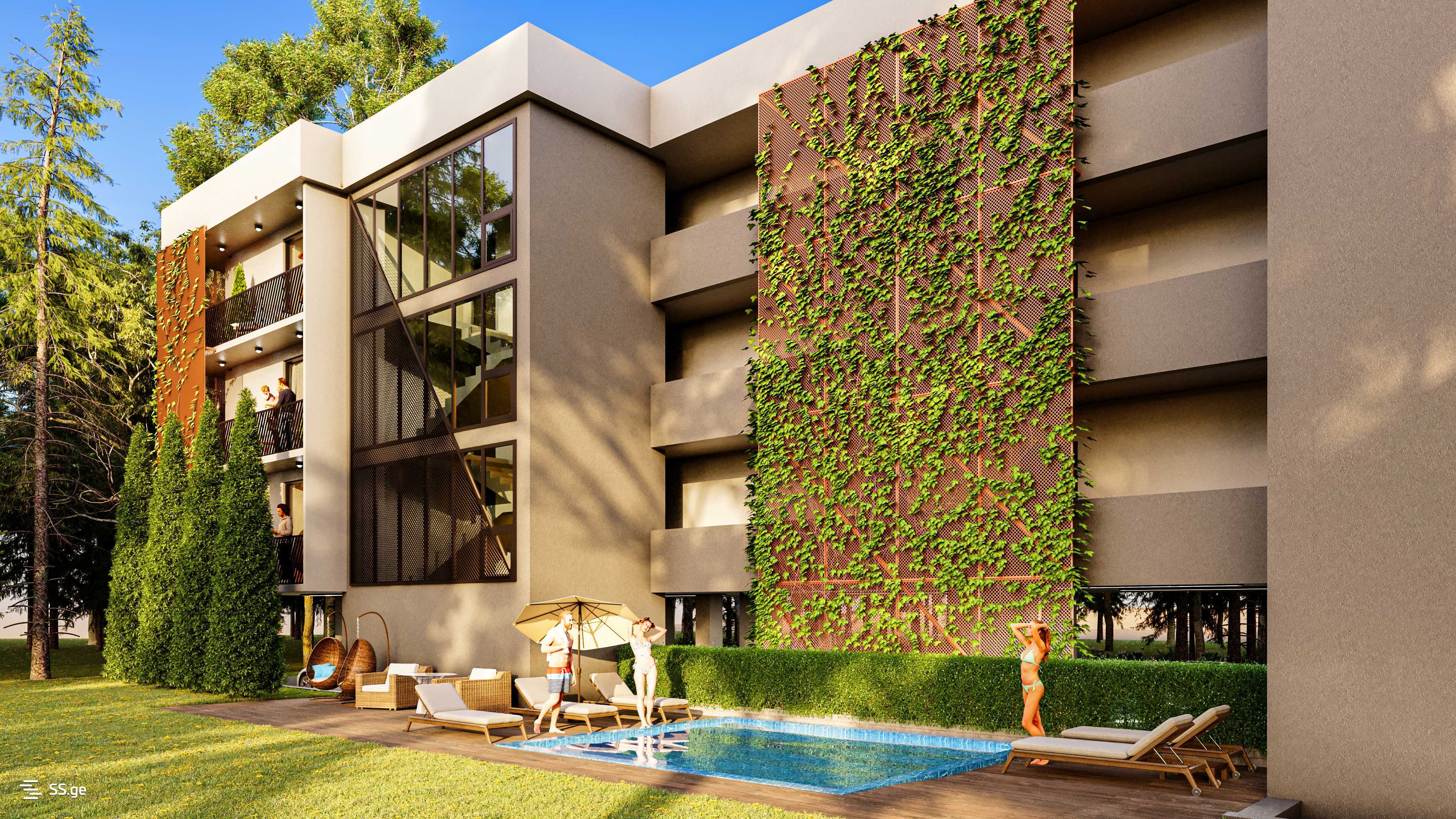 "Seaside-Shekvetili" is located 70 meters from the sea, surrounded by pine and spruce forest. Like all Topline projects, Seaside is exceptionally beautiful and refined from an architectural point of view. The building consists of 4 floors. Each apartment is designed for the users interests, and all of them are characterized by bright and cozy planning. There are a total of 23 apartments in Block A of Seaside, with different square footage, but all apartments have separate bedrooms. The minimum area starts from 38 sq.m and the maximum is 68 sq.m. As in other projects, Topline did not forget his signature, and in the case of Sisaidi, the living spaces are provided. There is an open pool and additional spaces in the courtyard of the residential building. The price is very competitive based on the price policy in the market and the price of a square meter starts from $1000 (equivalent in GEL).