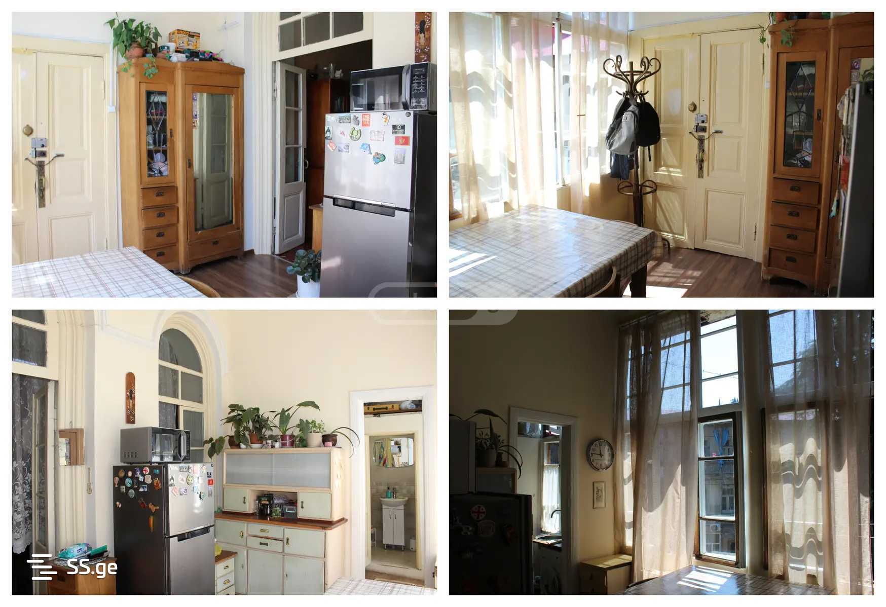 For sale is a 2-room apartment of 80 sq.m in Sololaki, on the third floor, with its own 8 sq.m basement and 80 sq.m attic. It is possible to add more stories or make a loft (the ceiling height is 4.2 meters). The apartment is located on Amaglebis street, 8 minutes away from the Freedom metro station.