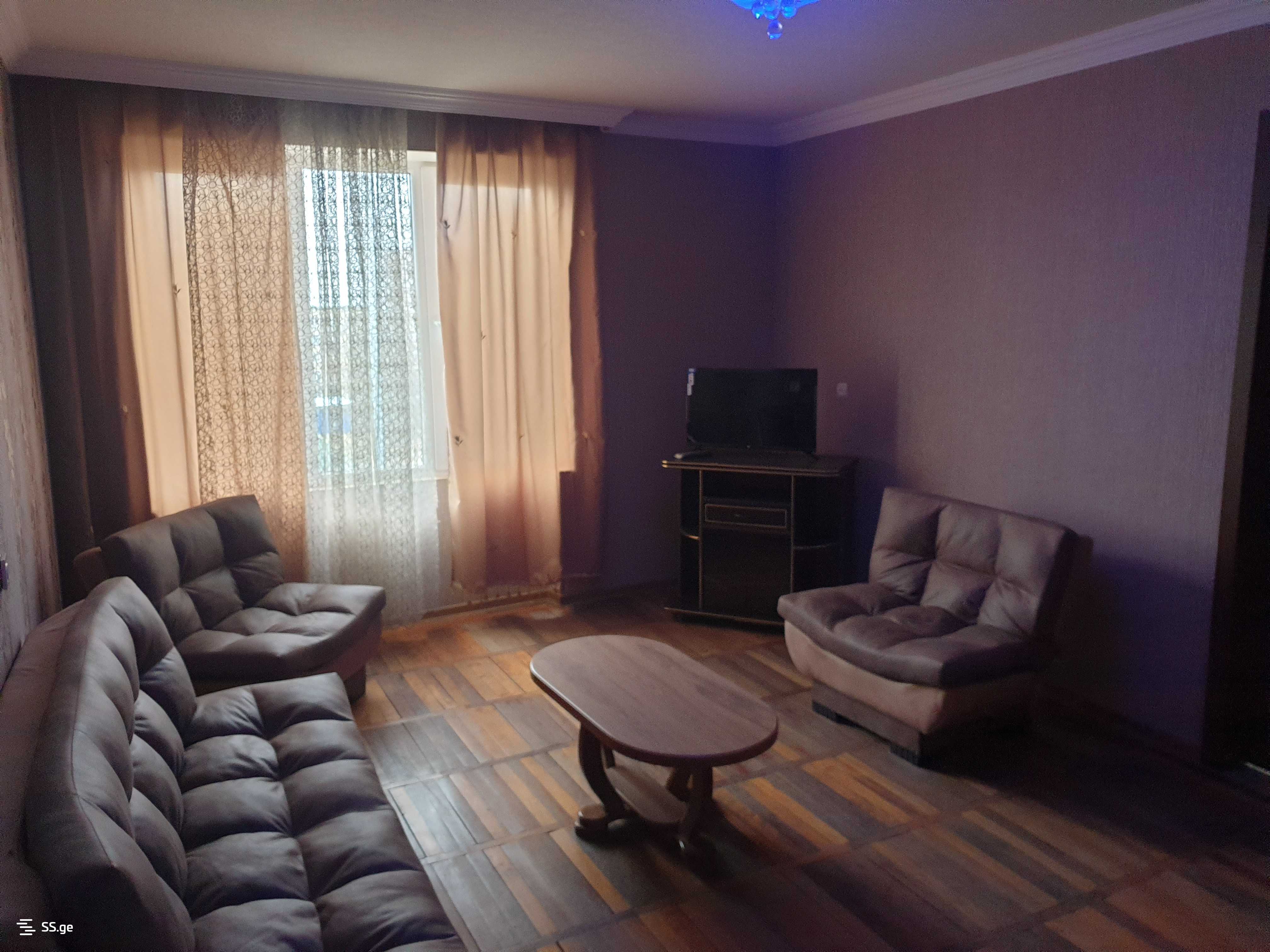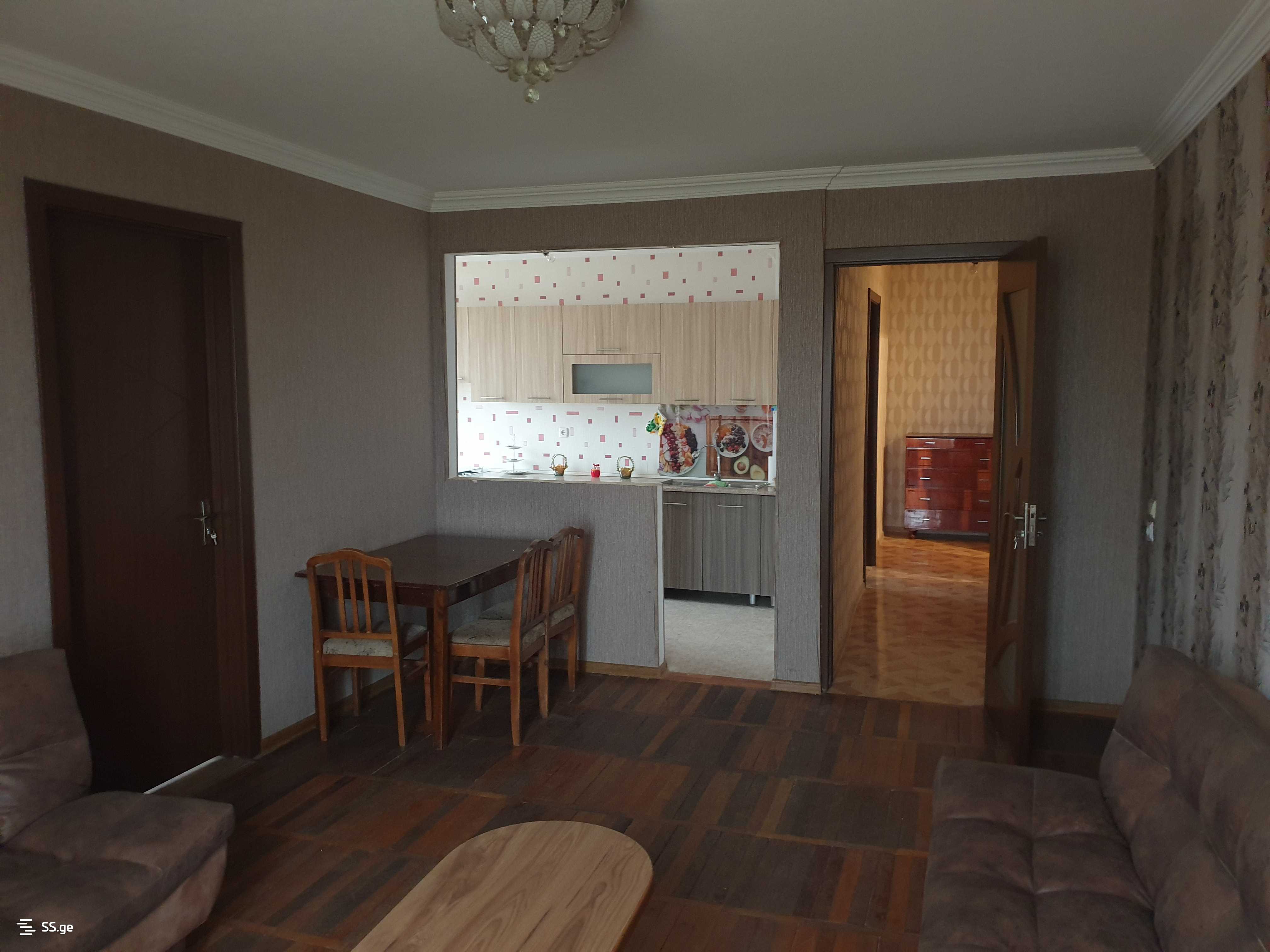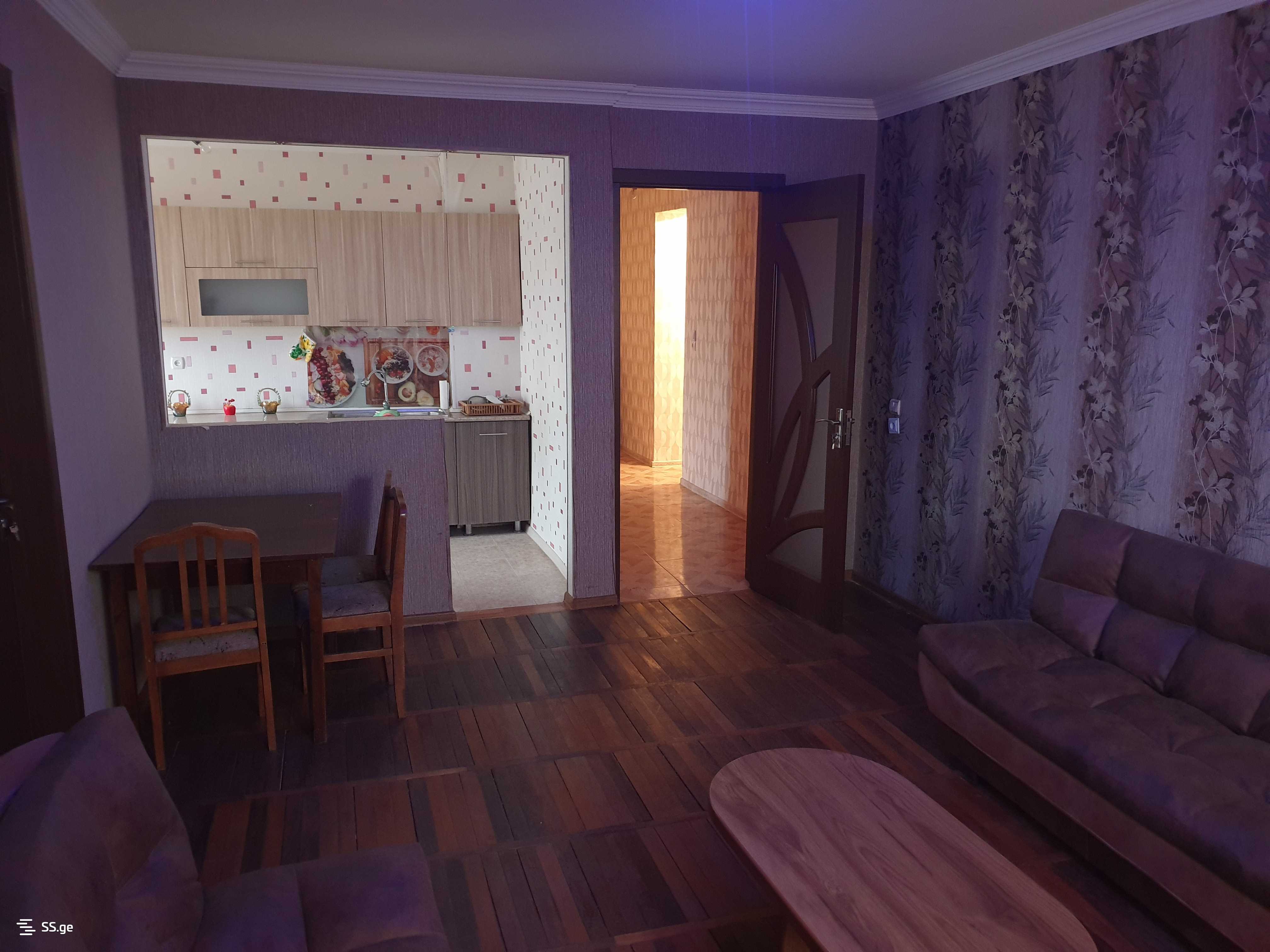 A two-and-a-half-room apartment for sale in Telavi, on Kavkasioni Street, on the 5th floor of a nine-story building. The building has a clean, tidy and secure entrance. It also has an elevator. The apartment is renovated. It has a living room, bedroom, loggia, kitchen and bathroom. The apartment also has a balcony. Area: 60 sq.m. Price: $46,000