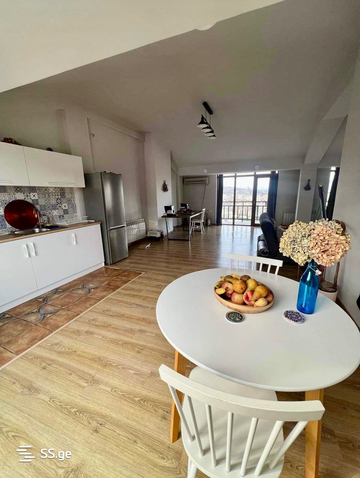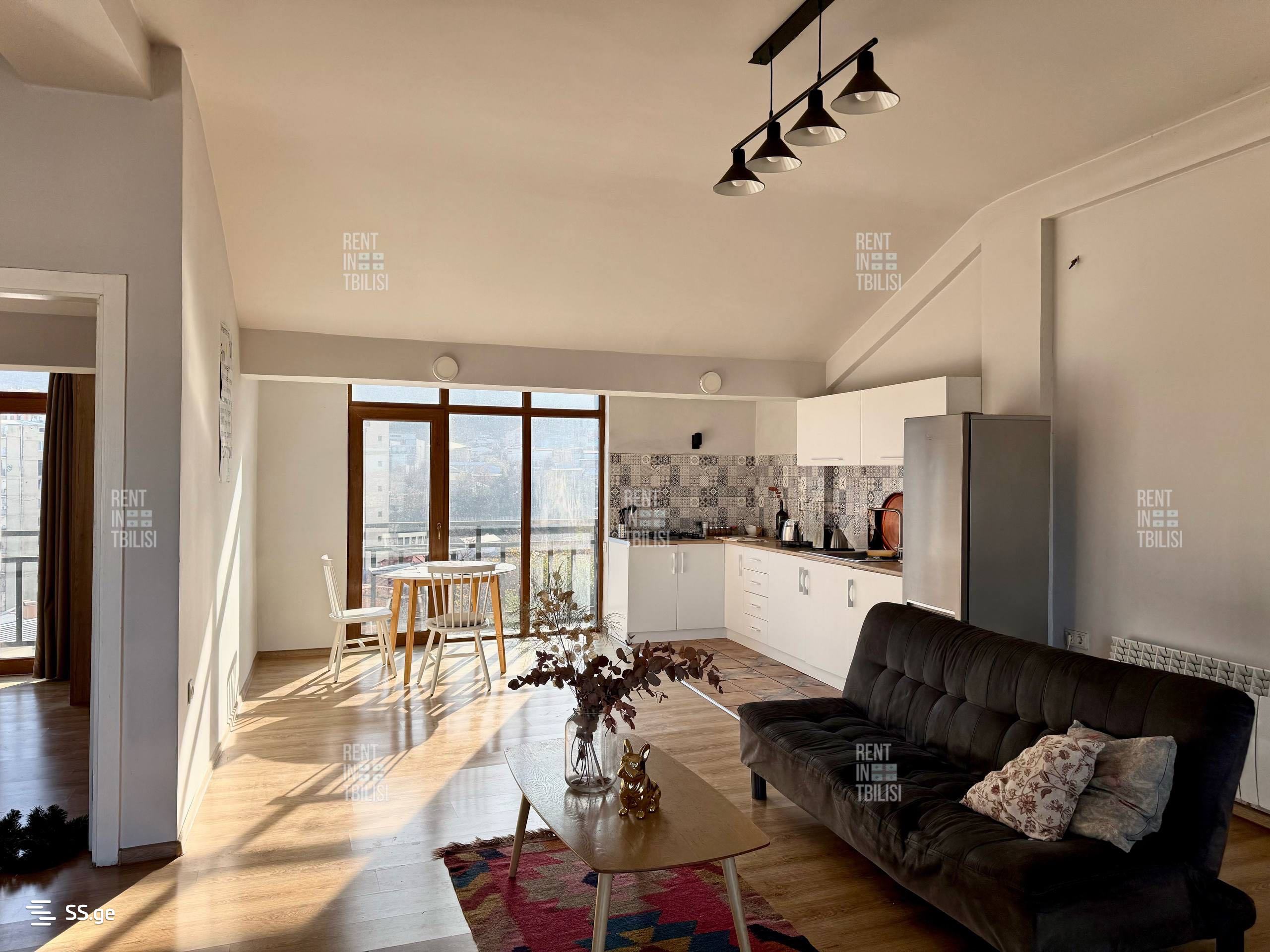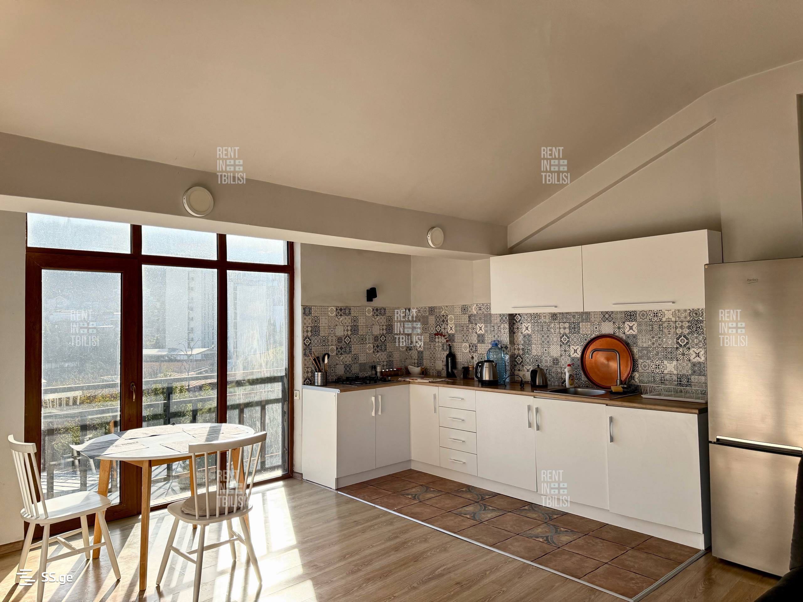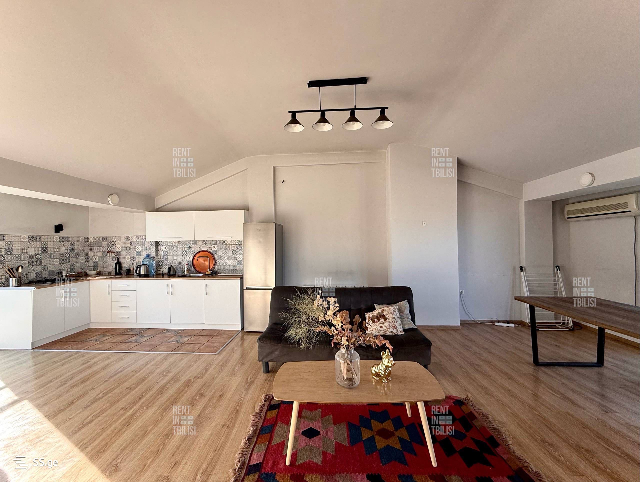 A loft-type apartment is for sale at a super price in a newly built, non-standard house. Upper Vake, sunny, airy, and quiet street. The total area of the apartment is 105 sq.m and it is located on the fifth, top floor (no additional floors. The roof is solid!) The apartment has one bedroom and a studio-type living room, providing a comfortable and cozy environment. The apartment has a large balcony with pleasant views of the entire city - there is no possibility of a building being constructed in front.