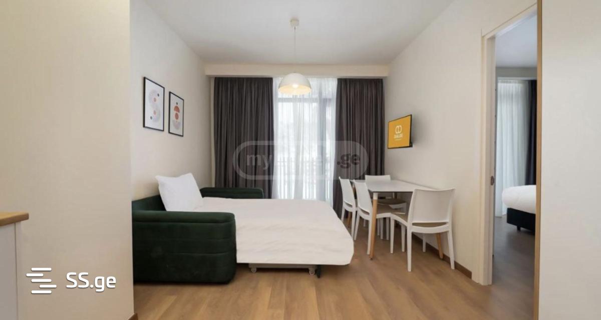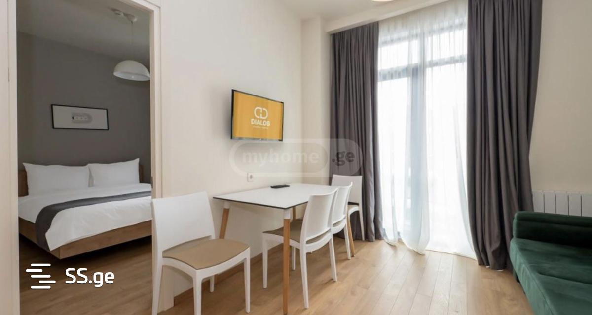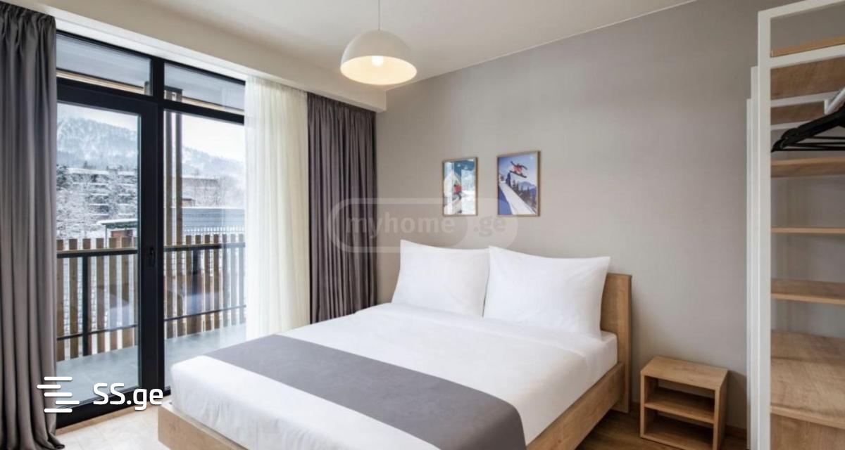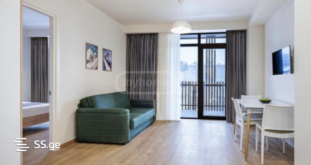 A hotel-type apartment is for daily rent in Bakuriani, on April 9 Street. Near the apartment is the Kokhta skating rink, restaurants, children's entertainment area.