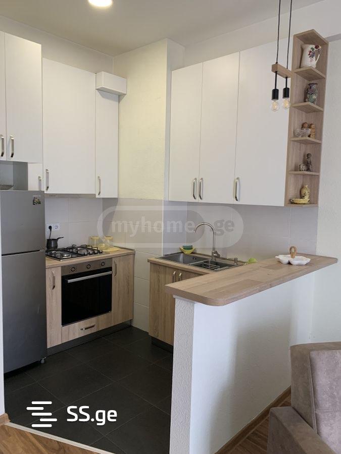 For rent, a very clean, cozy, uninhabited, newly renovated apartment with all household items, dishes, furniture and appliances at 24 Petre Iberi Street. In an ideal location in a quiet 3-building complex by the road. The complex is equipped with secured entrances, surveillance cameras, barrier-free outdoor parking and a children s entertainment square. On the first floor of the building there is a chain store. Carrefour, other shops and pharmacies are around. There are many bus stops on the street, 300 meters from the main road