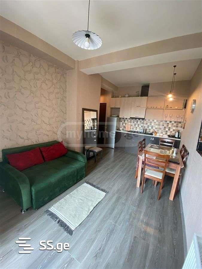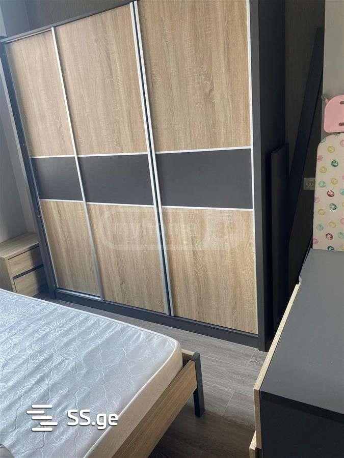 Apartment for rent in a newly built building on Tsereteli Avenue. Square, with a small balcony. Furniture, appliances, dishes, household items (toaster, kettle, iron, hair dryer, ironing board, various accessories) remain in the apartment with the first and last month s advance payment.