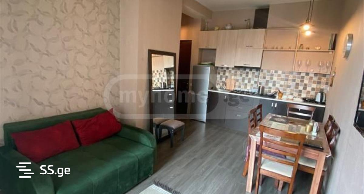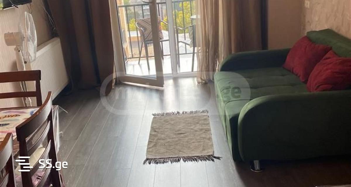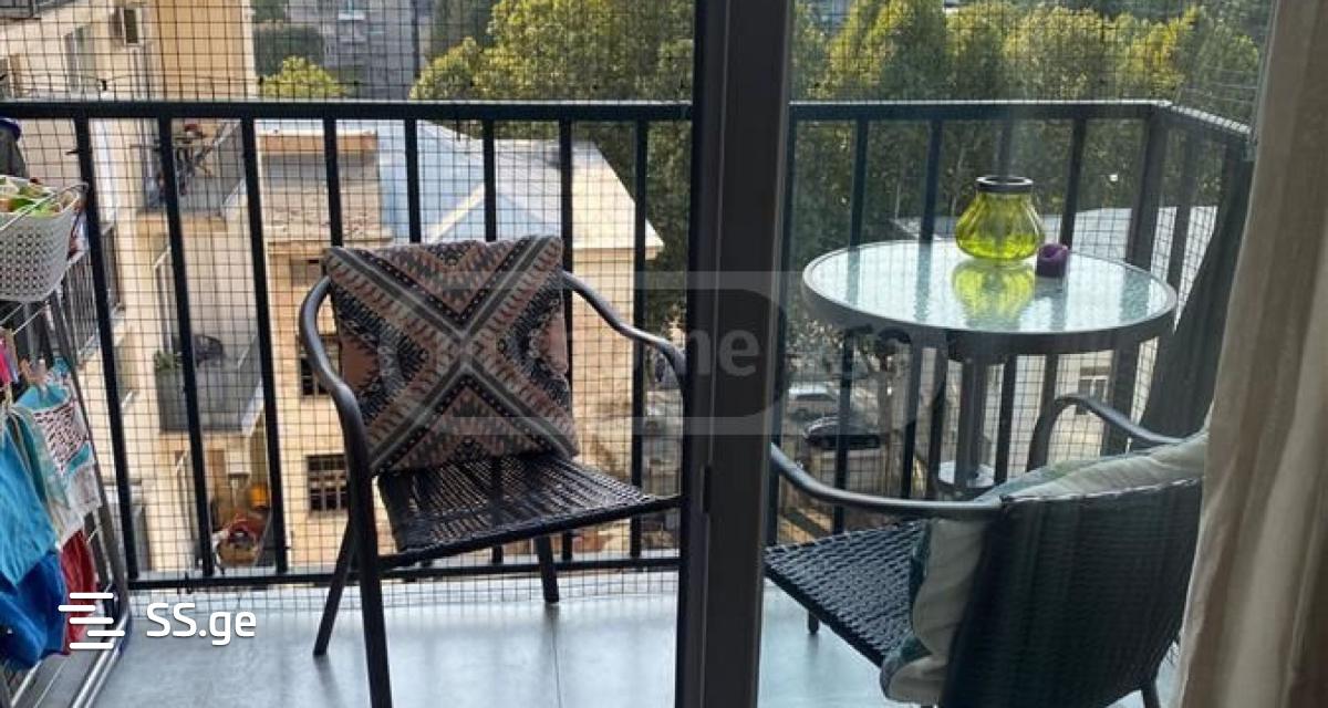 Apartment for rent in a newly built building on Tsereteli Avenue (117D). 45 square meters, with a small balcony. Furniture, appliances, dishes, household items remain in the apartment (toaster, kettle, iron, hair dryer, ironing board, various accessories)