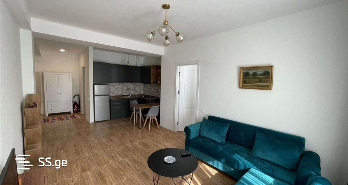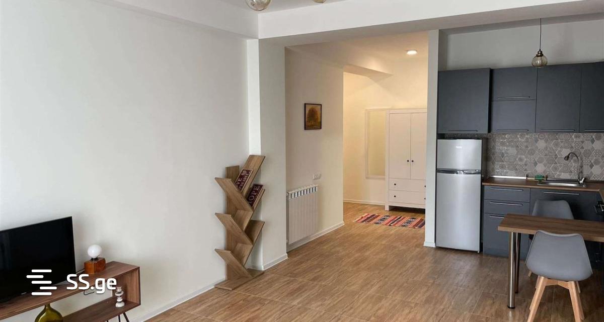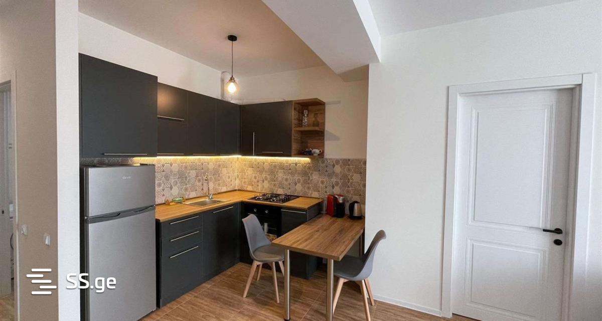 Apartment for rent on Kavtaradze Street (J. Nadiradze), near Kavtaradze Carrefour turnpike. The building is newly built, the apartment is newly renovated, with central heating and all the necessary equipment and furniture. An intercom is installed in the entrance hall and the elevator is activated by a chip. View of the yard.