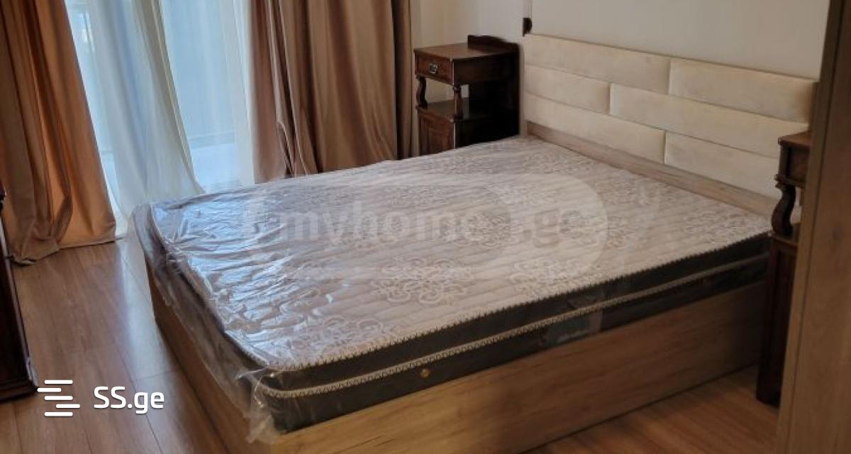 One bedroom apartment with balcony for rent in Park Hill Saburtalo development. The apartment has new bedroom furniture, kitchen table and chairs, magazine table, TV, refrigerator, washing machine and other small things. It is the second floor, but it is physically at the height of the fourth floor, because the first two floors have parking.