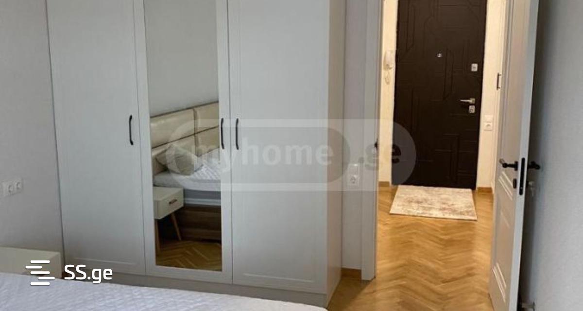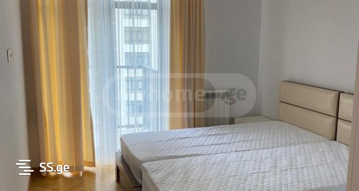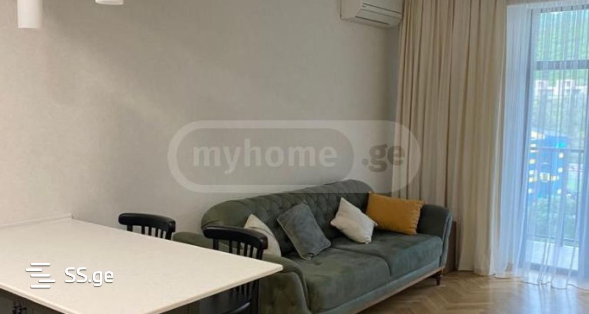 A newly renovated two-room apartment for rent. Complex "Arch in Saburtalo" (E. Mindelis 11). The apartment is furnished with oak parquet, air conditioner, central heating, built-in dishwasher. Items will be added to the apartment according to the client's wishes.