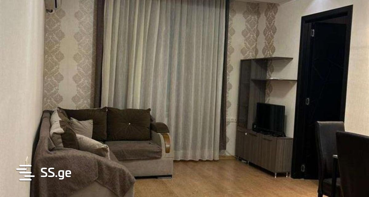 2-room, 50 sq.m. studio apartment for rent, very close to Akhmeteli metro station, 3 minutes walk, on Ramaz Shengelia Street, Balavari building. It is equipped with furniture and appliances (refrigerator, microwave oven, air conditioner, washing machine, gas stove), the apartment has central heating, internet.