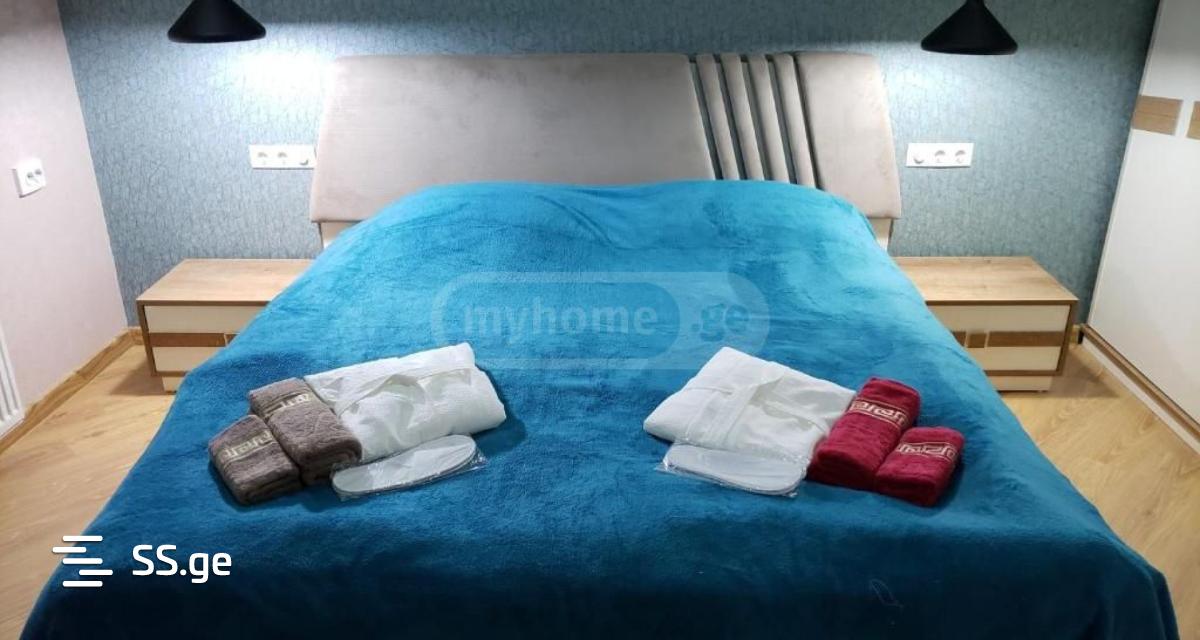 For rent, a cozy, well-furnished apartment with furniture and all kinds of equipment. The apartment is of duplex type, located in Tbilisi Marriott Gverdze Korpu, opposite April 9 Square.