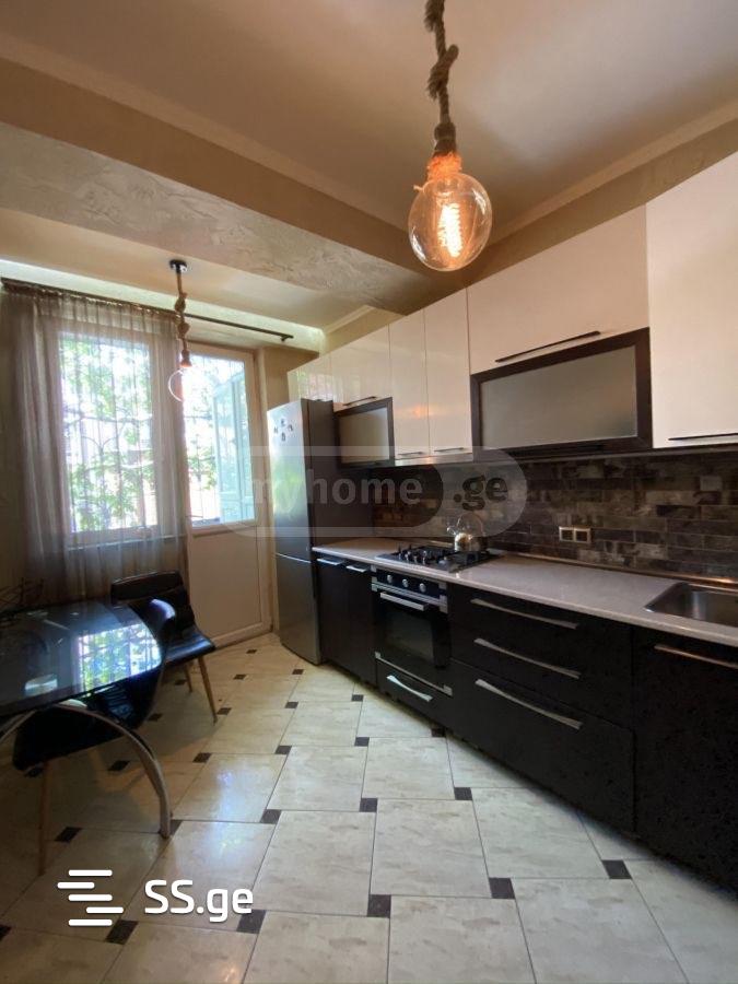 Bright corner apartment with furniture and appliances, isolated kitchen