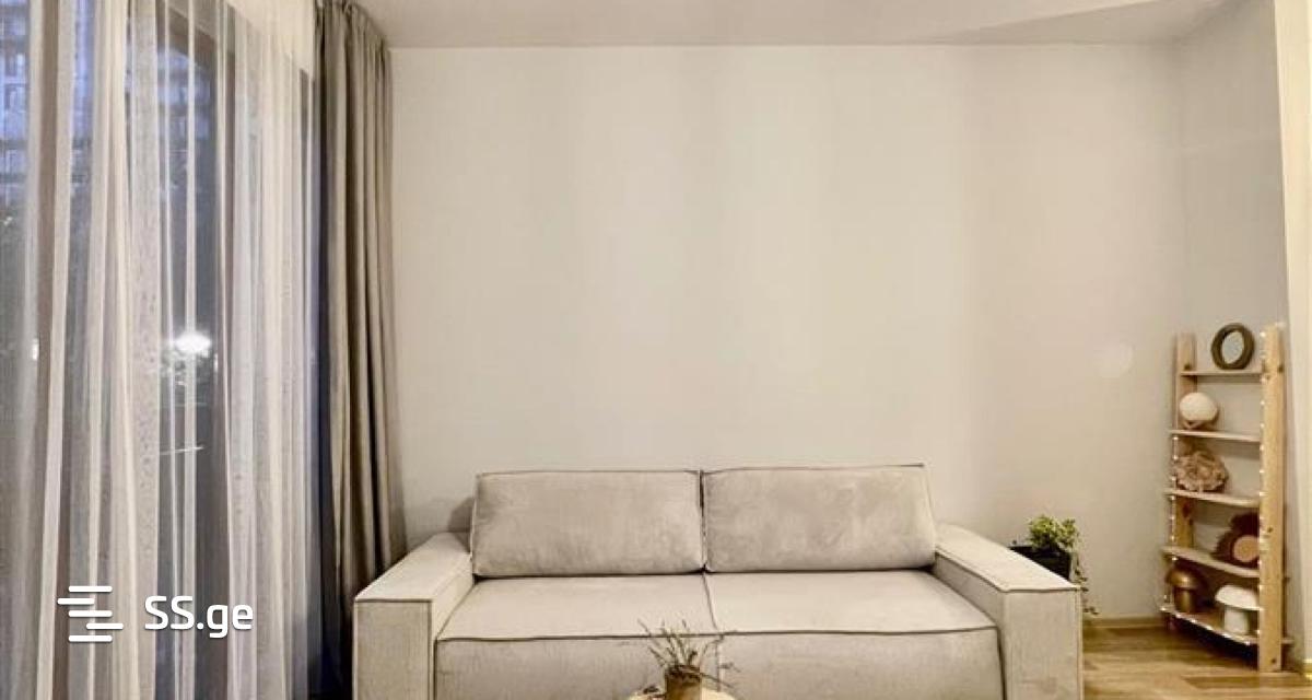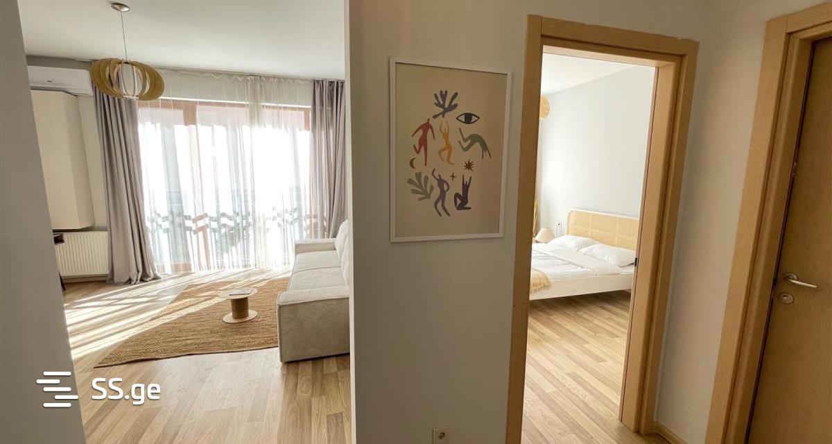 A 2-room apartment with new repairs, furniture and appliances is for rent in the 'M2' residential complex, near the Hippodrome, on Kartozia Street.