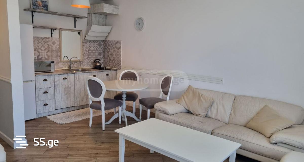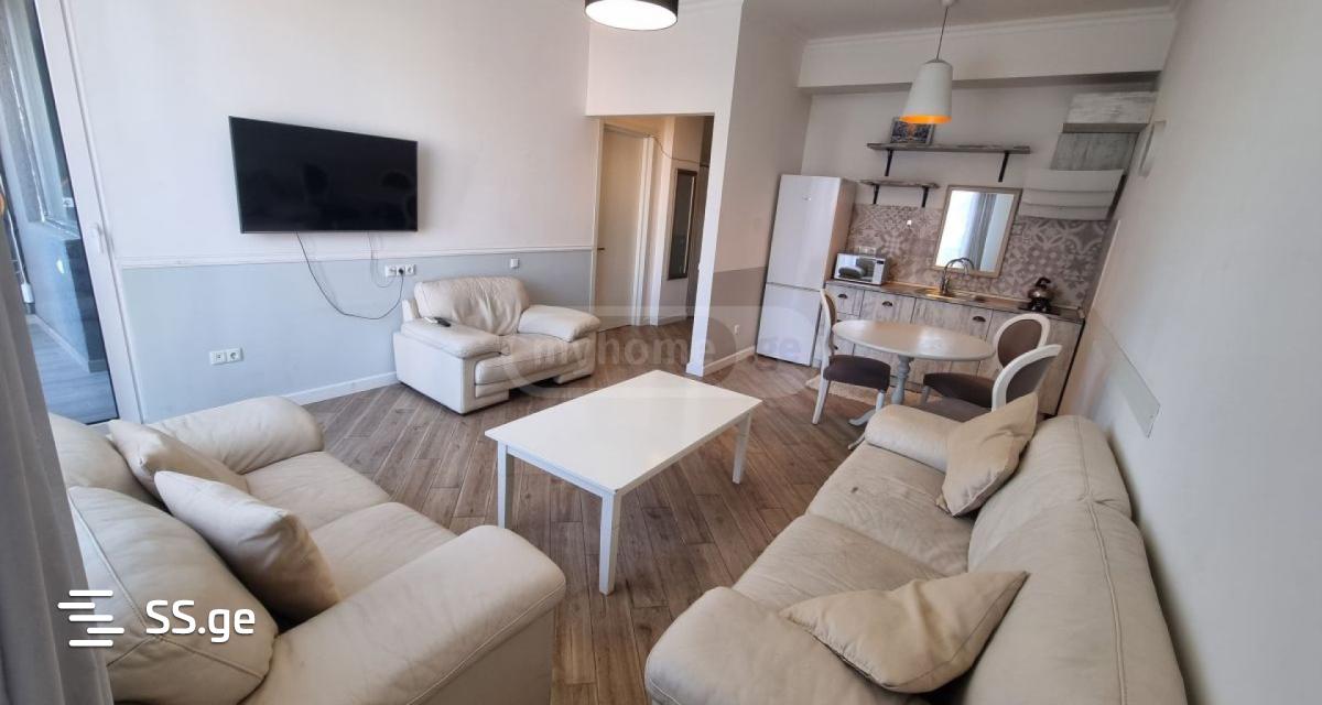 A 2-room apartment with 1 bedroom is for rent in the prestigious building Axis Palace 1. It has a balcony overlooking Tsintsadze.