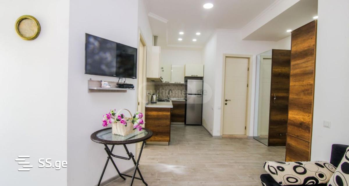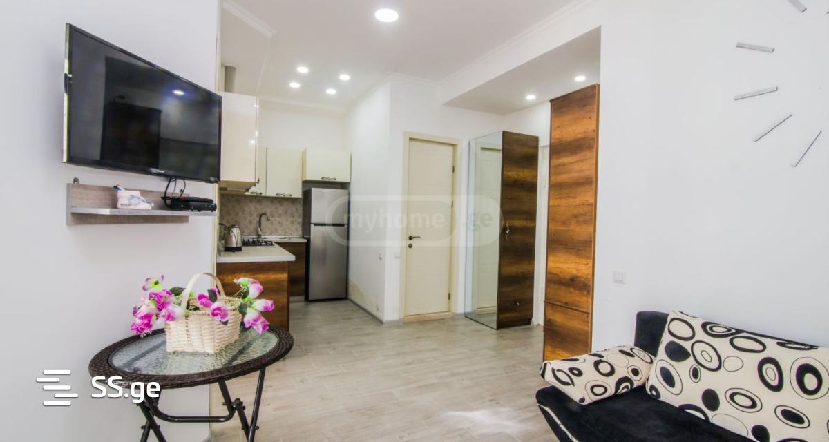 40 m2 apartment for rent in a new building, next to Vazha Pshavela metro station. 2 minutes walk to City mall. Nikora, Chamomile, 2 steps into the building. There is a microwave oven in the apartment.