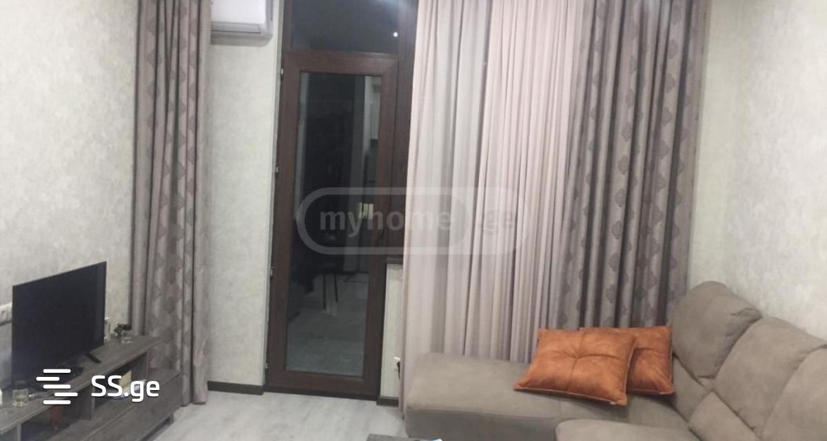 A 2-room renovated apartment for rent in Saburtalo, with furniture, central heating, all comforts, on the 12th (14th) floor, in a new building, in the green zone, on Politkovskaya street.
