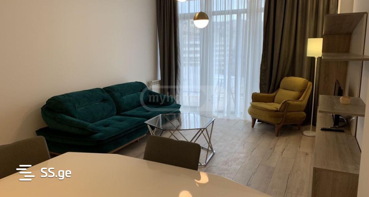 The apartment is equipped with all necessary appliances: washing machine, dishwasher, TV, vacuum cleaner, refrigerator, microwave oven, cooker, hood, air conditioner. With security, a fenced yard and a playground. The total area of the apartment is 62 sq.m., balcony 12 sq.m., living area 50 sq.m.