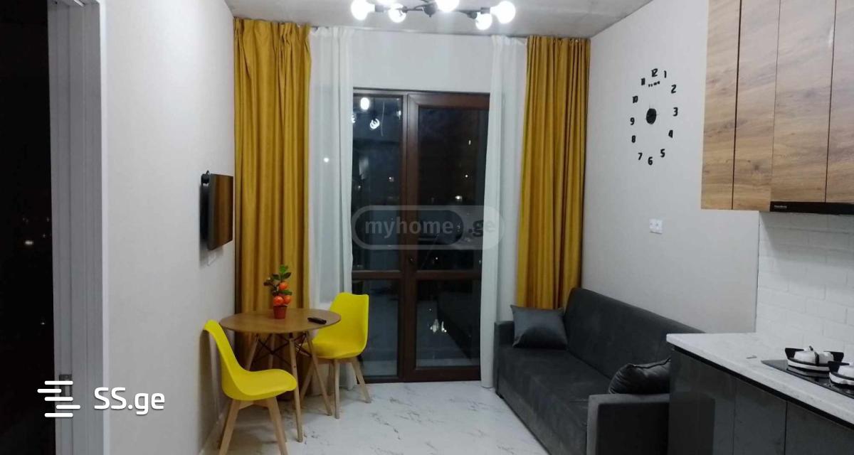 An isolated studio apartment for rent, near the Khrmagheli metro station, on the side of the European University, newly renovated with furniture, appliances, dishes, with a good view.
