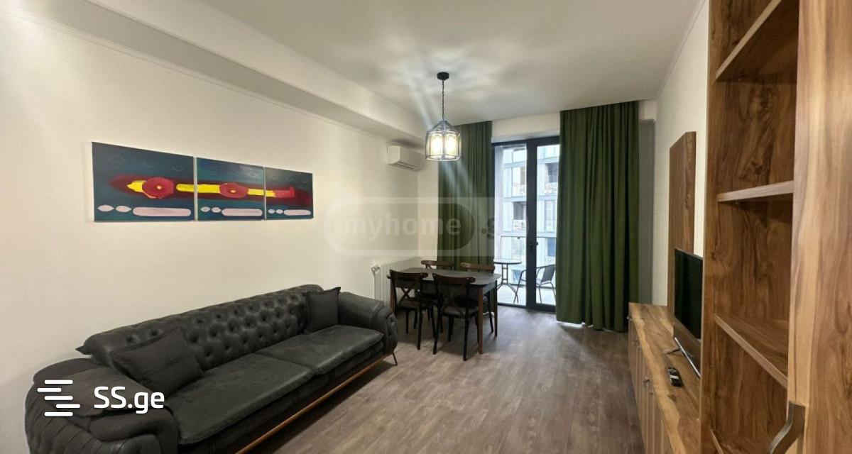 2-room apartment for rent near Mziuri Courts, in the newly built building of Park Home Vaki. Fully renovated, built-in kitchen with appliances. The apartment is furnished. There is a football and basketball stadium in the inner yard of the complex, there is also a swimming pool in the complex, and tennis courts nearby. A healthy environment for both children and adults.