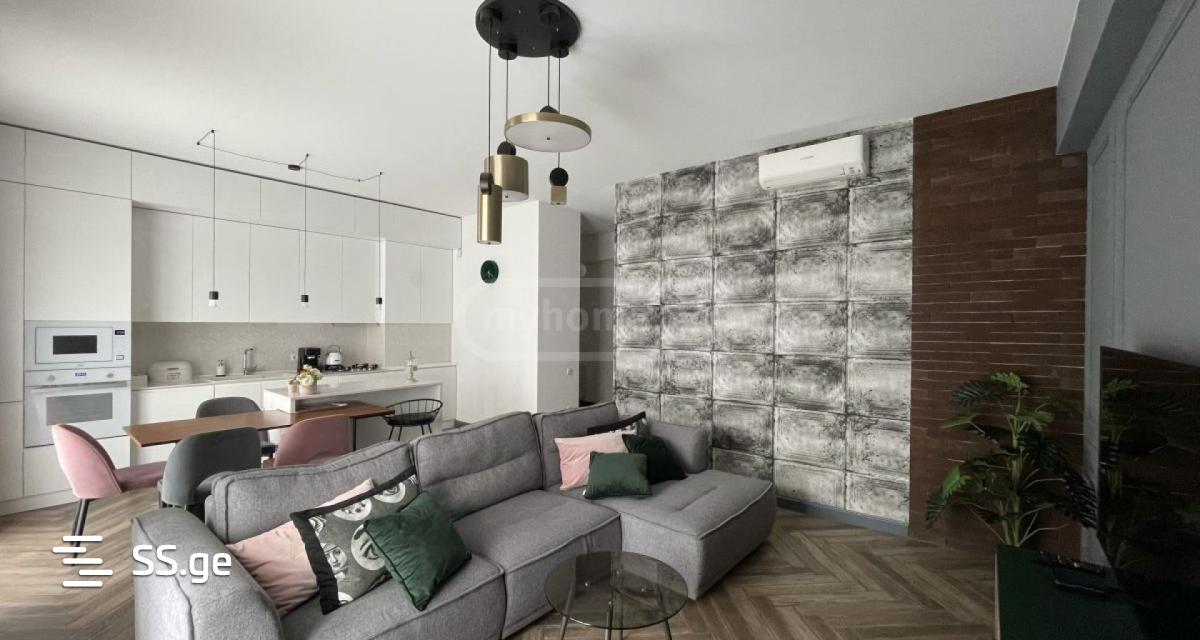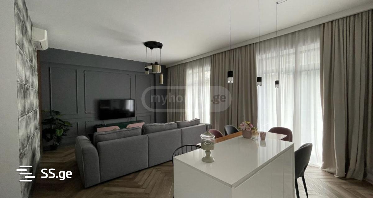 From January 5, a newly renovated two-room (90 sq.m.) apartment is for rent on Tamarashvili Ave., Domus building, with 2 balconies, a cozy furnished yard. The apartment is fully equipped with all kinds of furniture and appliances. 24-hour security.