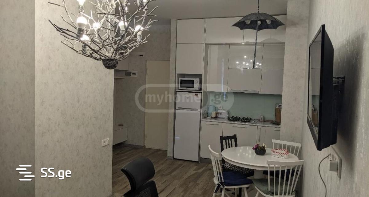 For rent, a newly renovated, furnished two-room apartment in Vake, Marabdi Street 33, on the third floor of an eight-story building (VAKE DIMOND)
