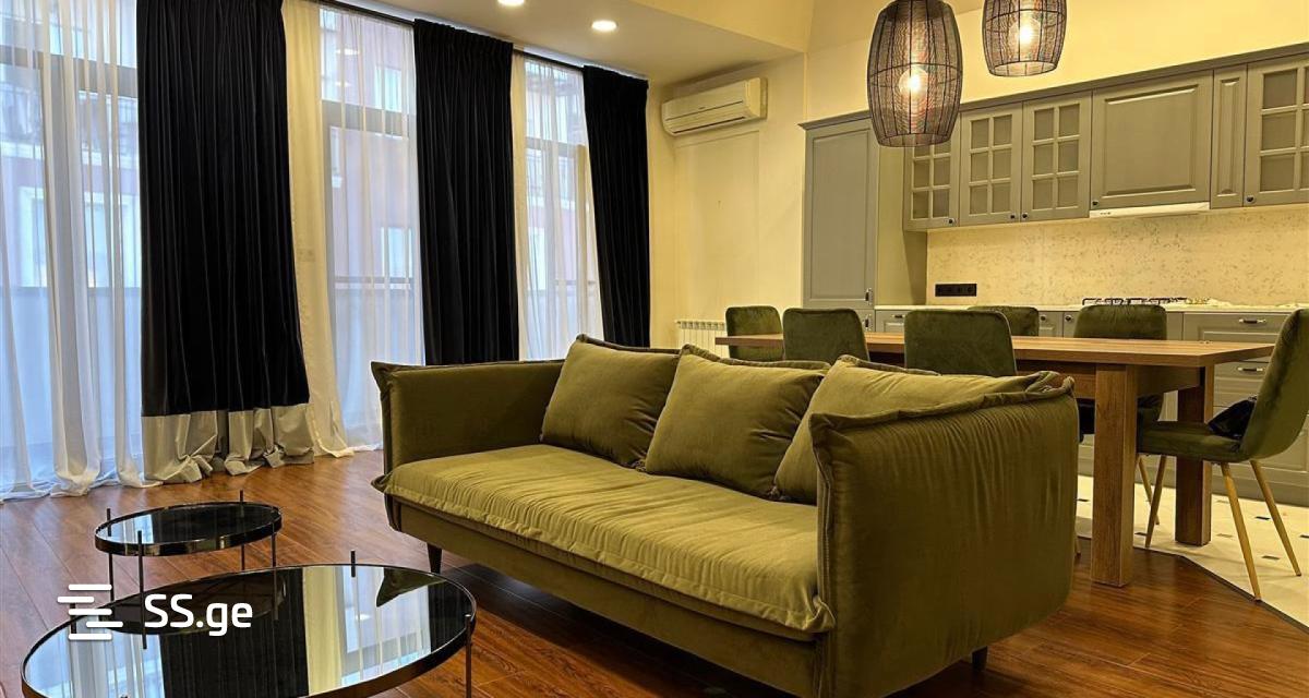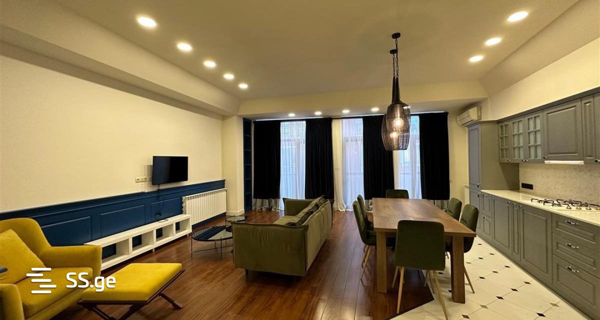 Vera, Gogebashvili street. 4th floor of a 6-storey building. The entrance is closed, it is opened with an intercom. Apartment 100 square meters, with 2 balconies, quiet street, with a view of Mtatsminda and Tbilisi. 1 large living room with its own kitchen and 1 master bedroom, 2 bathrooms, 1 guest bedroom, the bedroom has a wardrobe, the apartment also has built-in storage, a washing machine, a dishwasher, a TV in the living room and the bedroom, the living room has a balcony with a view of Mtatsminda, and the bedroom has a view of Tbilisi. with a view. The hallway is clean. Tidy up every week. The building is newly built.