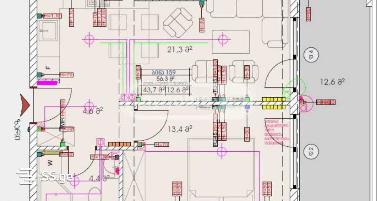 Two-room renovated uninhabited apartment for sale in 'Archicentraluripark' complex, Tamarashvili Street 13. Furniture and appliances remain in the apartment.