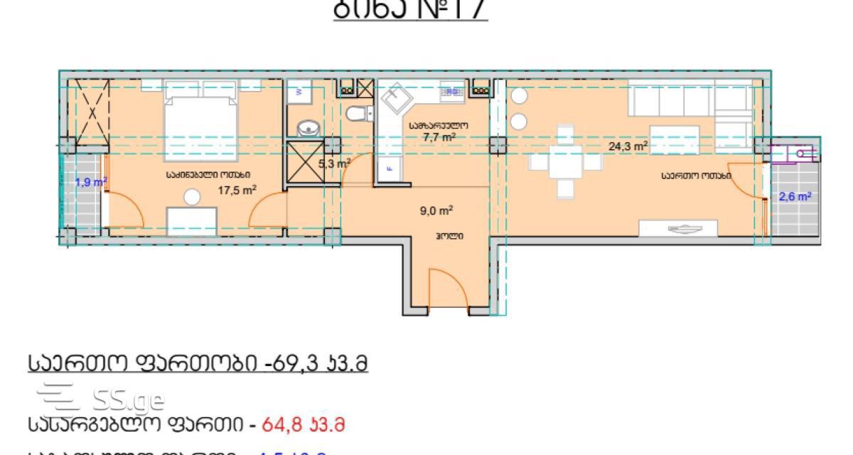 Apartments for sale in Didi Dighomi, Ekvtime Khelazi Street. The apartments are air-conditioned with a green frame. The building is completely built and exterior facade works are in progress.