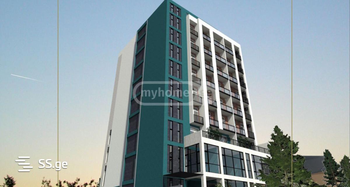 Apartments for sale in Didi Dighomi, Ekvtime Khelazi Street. The apartments are air-conditioned with a green frame. The building is completely built and exterior facade works are in progress.