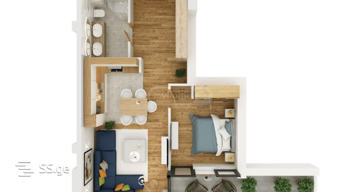 The apartments are equipped with a green frame condition, which means: a) finished exterior and paved entrance b) installed elevator and external windows c) vertical stands of water, natural gas, electric energy and ventilation shafts arranged in each area d) built and plastered interior in the apartment according to the project agreed with the owner partitions e) internal electrical wiring installed in the apartment f) floor stretched with sand-cement solution g) heating pipes installed in the floor