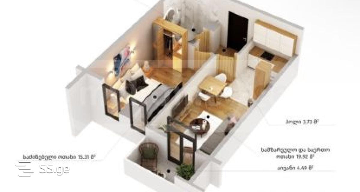 Didi Dighom, the fourth micro-district. On Archile Mefi Street, the building has been built and very little work remains. The amount of utility meters has also been paid (3000 GEL). It is very close to the bus stop, pharmacies and supermarkets. The apartments are on the 10th, 11th and 12th floors. The elevator is being installed